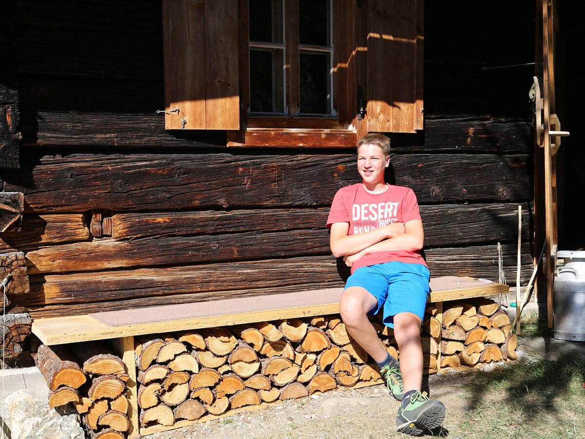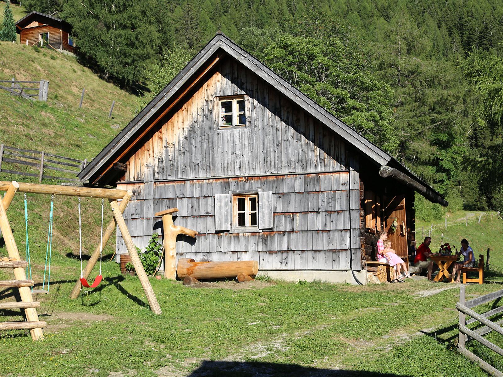 Almhütte mit 400 Jahre alter Bausubstanz, auf einem Steilhang gelegen, sonnig und herrlicher Ausblick. Grillplatz, Schaukeln, Sitzbänke, Brunnen, Bach 100 m entfernt. Küche mit Holzherd, Stube mit Sitzecke und Bad mit WC. 3 km zum Schigebiet Planai-Hochwurzen.