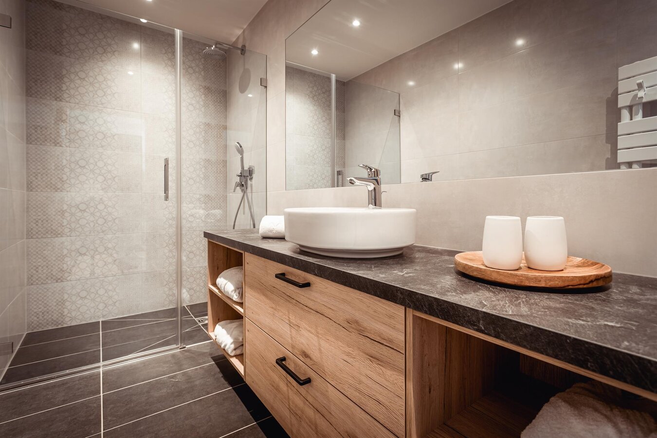 Eben alles was man so braucht. By the way: Das Auto kannst du in der Tiefgarage lassen. Servus im Gustav – 8 Appartements von Smart bis Sky – außerdem mit dabei: Private Sauna im Appartement, eigene Terrasse oder Balkon Top 8 hat keine Balkon, komplett ausgestattete Küchen mit allem PiPaPo, 1-2 Schlafzimmer und Bäder sowie eine Aussicht nach Westen auf die Hochwurzen und das eine oder andere Chi-Chi.