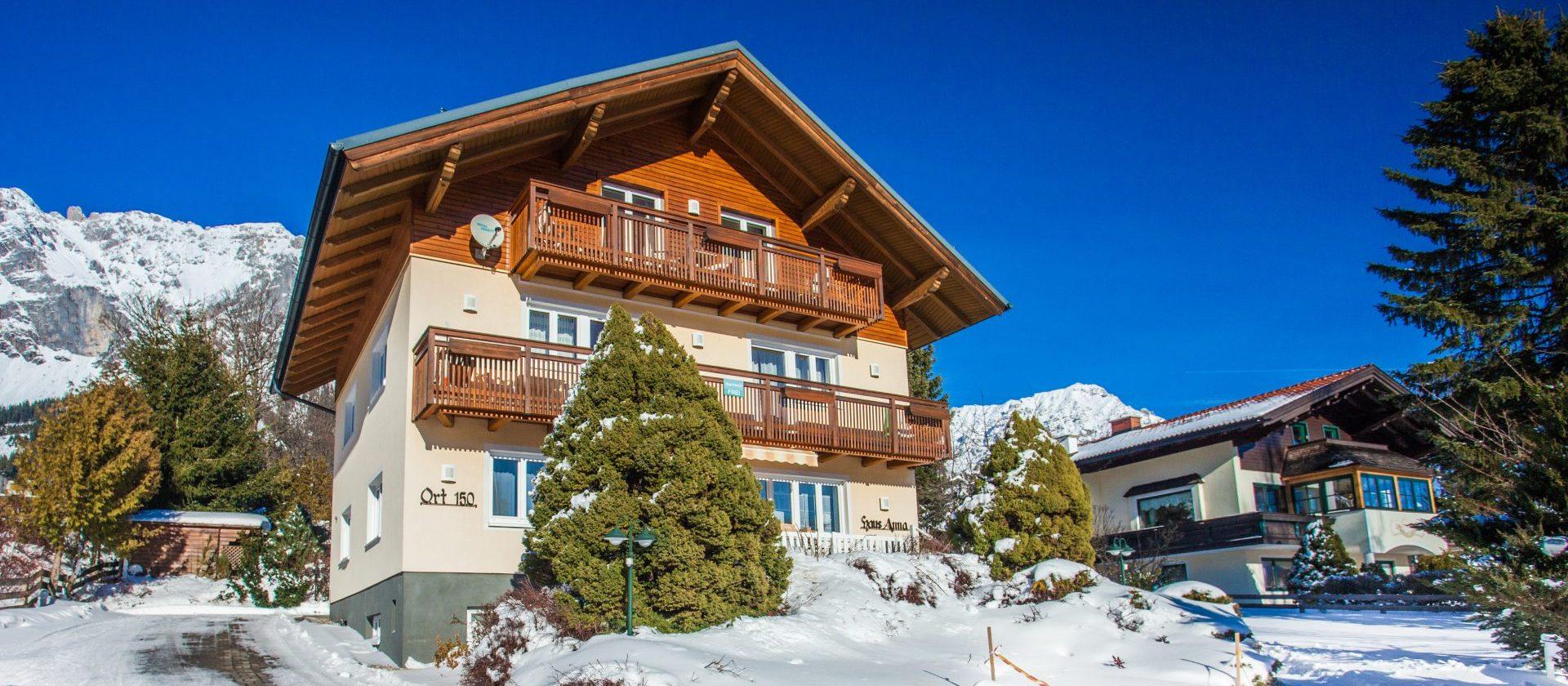 Herzlich Willkommen in unserem Appartementhaus Anna in Ramsau am Dachstein. Unser Appartementhaus Anna liegt im Ortsteil Ramsau Ort in sonniger, ruhiger Lage mit herrlichem Blick auf die Bergwelt von Ramsau am Dachstein. Die Talstation der Gletscherbahn erreichen Sie in nur 15 Autominuten. Die Bushaltestelle des kostenlosen Skibusses, sowie der Einstieg in die herrlich gespurten Langlaufloipen ist nur wenige Gehminuten von unserem Appartementhaus Anna entfernt. Parallel zur Loipenspur – immer in der Sonne! – verläufen die kilometerlangen Winterwanderwege durch die verschneite Landschaft. Sportgeschäfte, Restaurants, Supermarkt, Sportshops mit Skiverleih, Skischulen und das Badeparadies von Ramsau finden Sie rund um unser Haus Anna. Zum nahegelegenen Skilift können Sie direkt vom Haus Anna aus starten.
