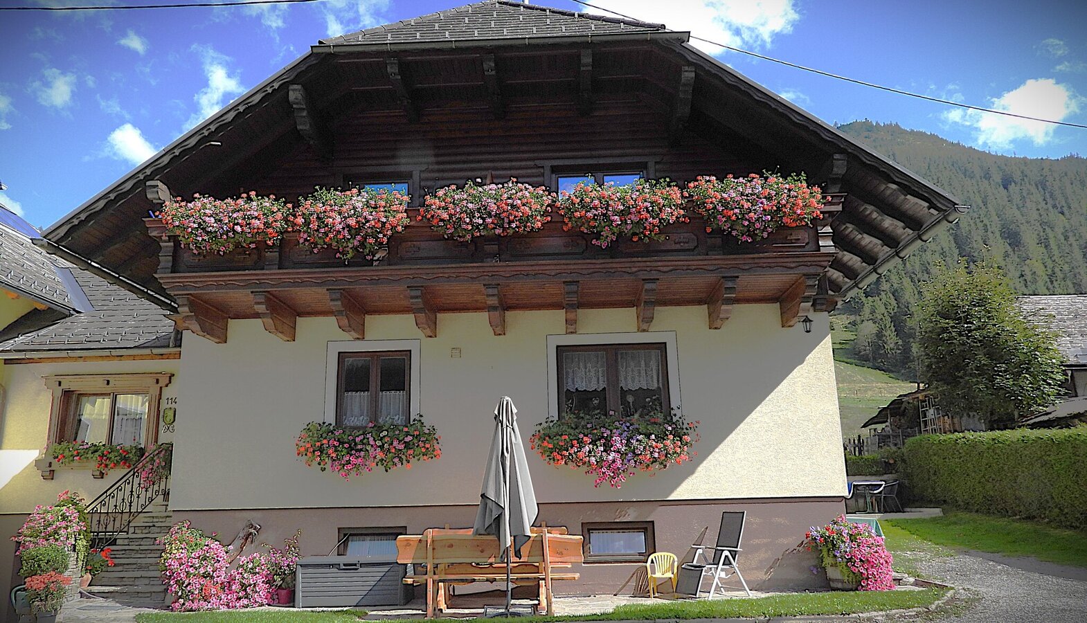 Unser Haus bietet 4 gemütliche und rustikal eingerichtete Doppelzimmer mit Sat-TV. In unserem gemütlichen Aufenthaltsraum mit Sat/TV genießen Sie unser reichhaltiges Frühstücksbuffet mit selbst hergestellten Produkten. Rund um das Haus bieten wir ein Gartenhaus mit Grillmöglichkeit sowie Liegestühle zum Relaxen auf unserer Liegewiese. Ebenso steht ein Gästekühlschrank für Sie bereit und den Schuhraum inkl. Schuhtrockner können Sie natürlich auch gerne nutzen.
