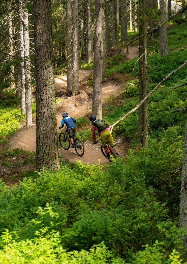 Der Hochalm Trail überzeugt mit seiner naturnahen Bauweise. Elemente wie Felsplatten und Steine, sowie die natürlichen Kurven machen diese Line zu der idealen Strecke für Trail-Einsteiger, die nach den blauen Abschnitten eine neue Herausforderung suchen.