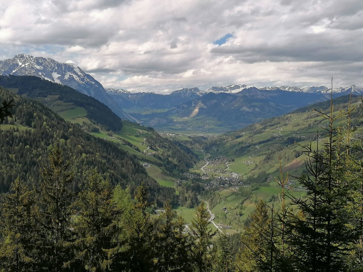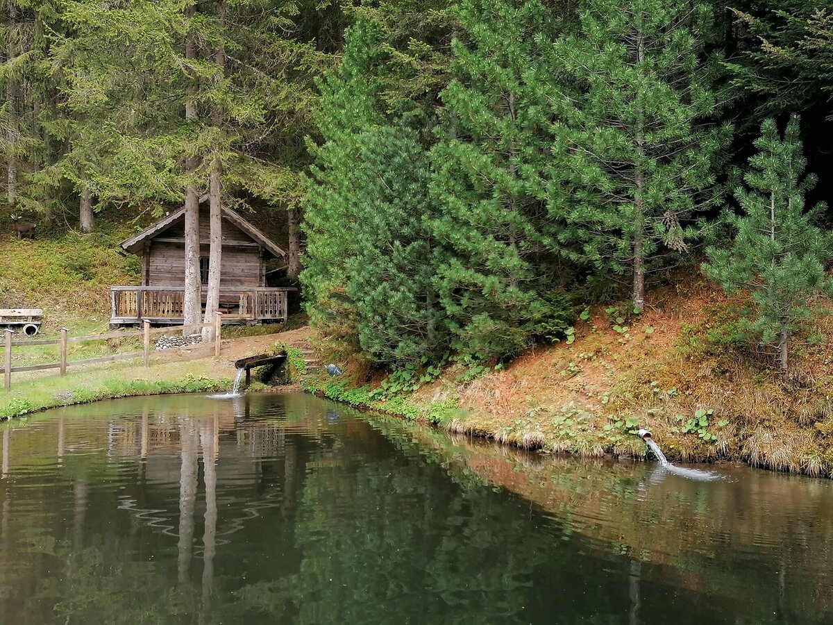 Wieder am Weg kommst du nach ca. 500 Metern zur nächsten Kehre. Hier begibst du dich links auf die Forststraße. Ein paar Schritte später, beim Bankerl, bietet sich dir ein herrlicher Ausblick ins Donnersbachtal. Der Weg führt weiter bis zum nächsten Wegweiser, wo du links auf einen schmalen Waldweg abbiegst, bergab zu einer Hütte und zu den Fischteichen. Ein wunderbarer Platz, um nochmals auszurasten, bevor du am Wiesenweg, weiter bergab gehst und wieder zum Ausgangspunkt kommst.