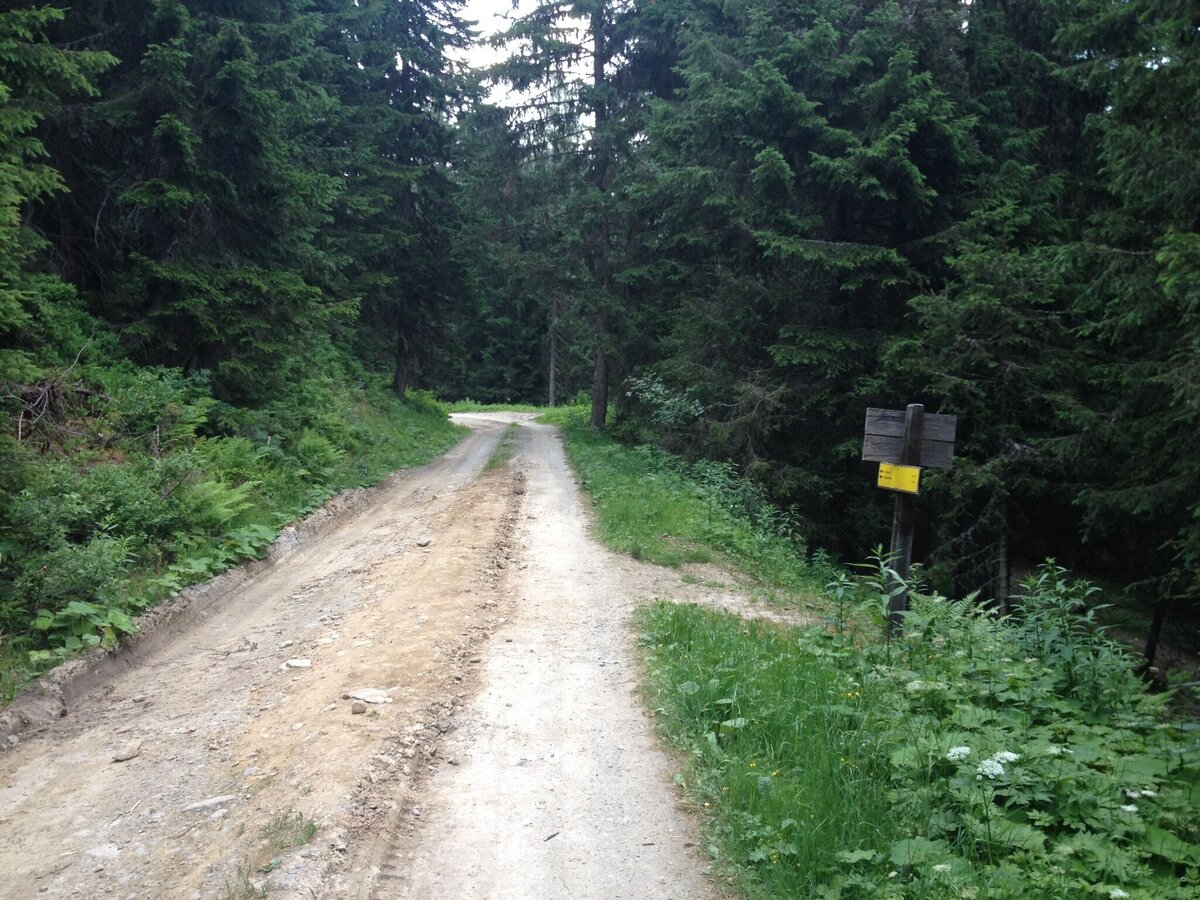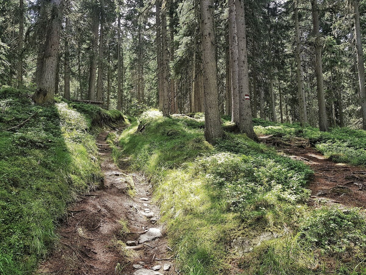 Vom Startpunkt am Wanderportal Hochwurzen-Tal läufst Du - vorbei an der Talstation - auf dem Wanderweg #60 los. Dieser zweigt etwa 250 m weiter, bei der Bergstation der Sesselbahn Rohrmoos II, nach links in den Wald ab. Bergauf durch den Wald und über eine Wiesenquerung (Skipiste) gelangst Du zum Wegkreuz #60 wo du nach links bergauf weiterläufst (nach rechts führt hier der Bernhard Knauß Trail).