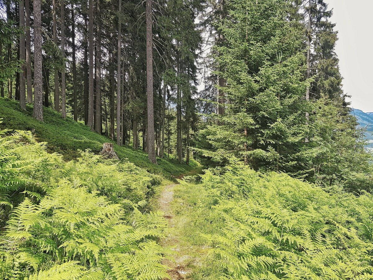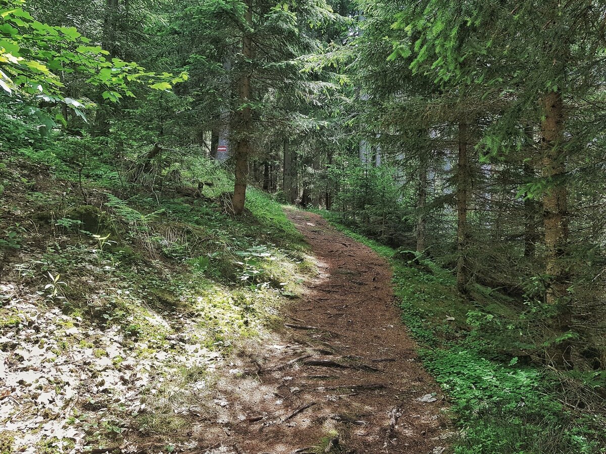 Der Hochwurzen Trail zweigt allerdings gleich wieder rechts vom Forstweg ab (Weg #773) und führt Dich über einen schönen Waldpfad weiter bergab bis Du wiederum einen Forstweg und die "Schwammerlstadt" des Schwammerlweges erreichst, welchem Du nun zurück zur Talstation der Gipfelbahn Hochwurzen und Deinem Ausgangspunkt folgst.