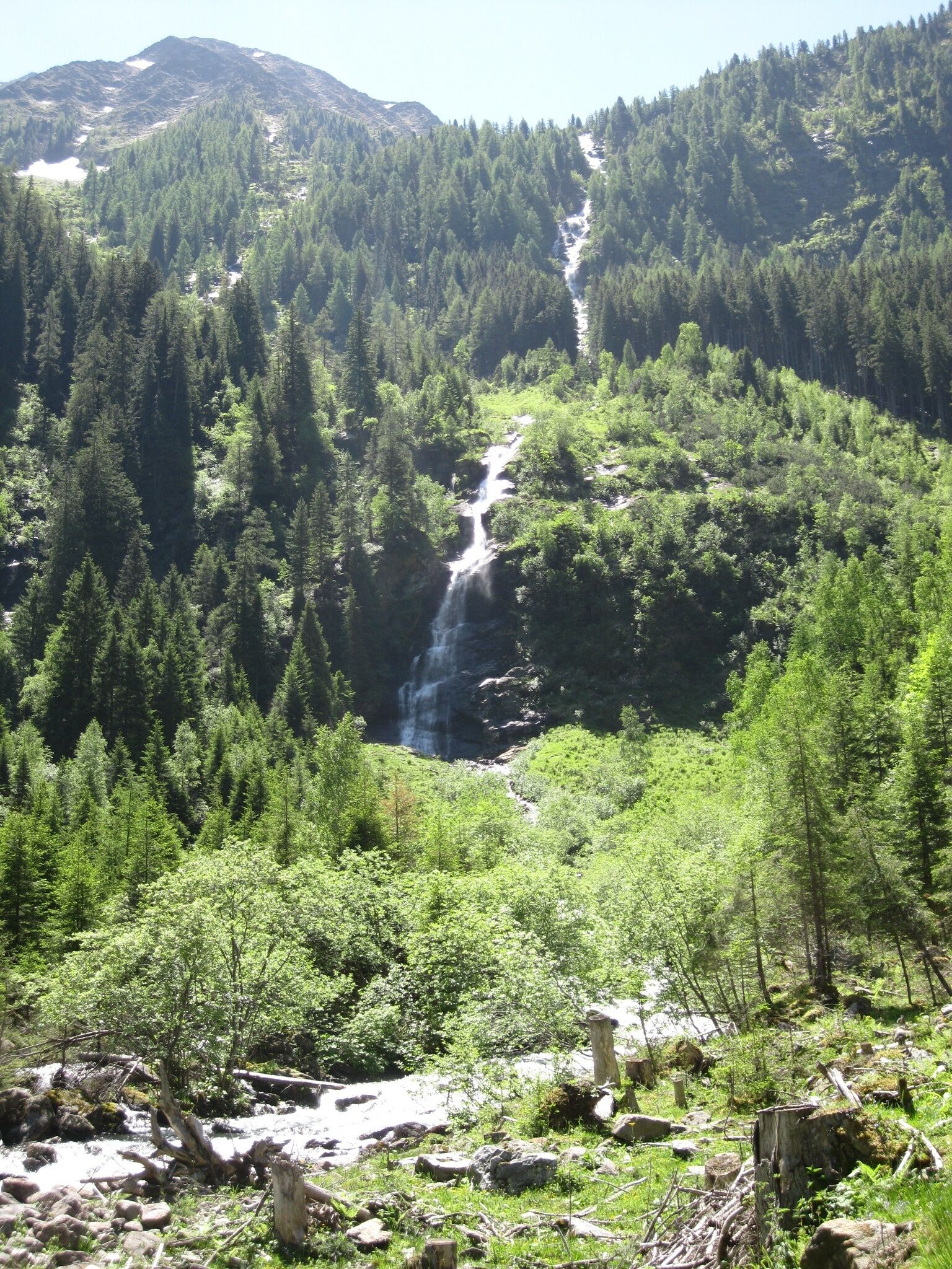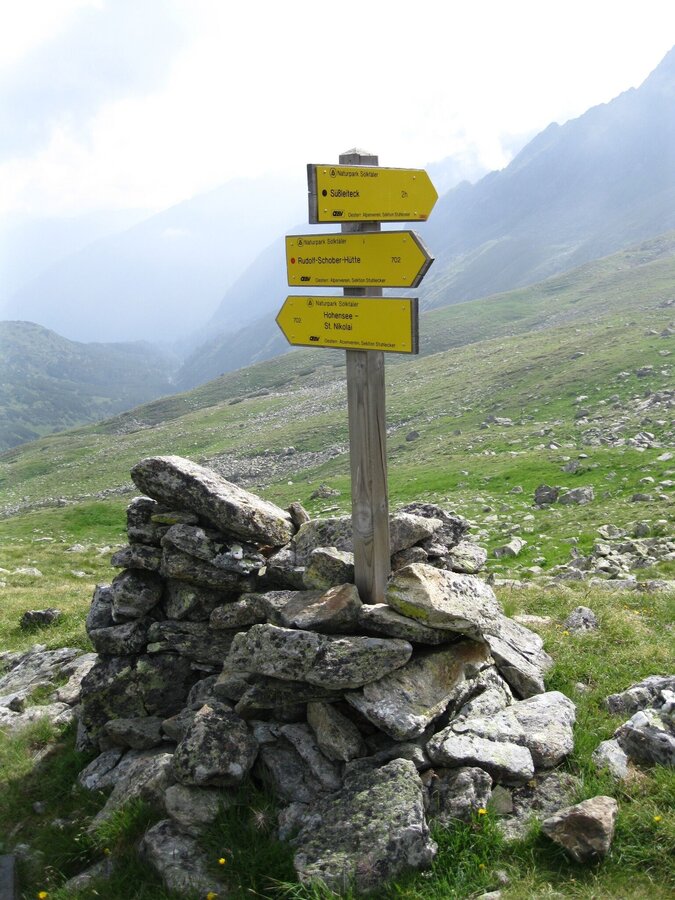 Von St. Nikolai im Großsölktal wandern wir entlang des Bräualmbaches, vorbei am Wasserfall durch den Hochwald zum Hohensee. Neben mehreren verfallen Hütten stehen noch zwei aus Marmorsteinen gebaute Almen, die jedoch nicht bewirtschaftet sind. Der See selbst liegt von hohen Bergen umgeben und bietet den perfekten Rastplatz für uns. Etwas weiter oben lassen wir den Wald hinter uns zurück und runde Buckel, vom Gletscher glatt gehobelt und von Moosen überzogen, beherrschen jetzt unsere Umgebung. Für uns geht es weiter hinauf zur Schimpelscharte. Tief unten liegt der grüne Schimpelsee, direkt vor uns teilt eine niedere Steinmauer den runden Rücken der Schimpelscharte - mit 2273 Metern der höchste Punkt unserer Tour.