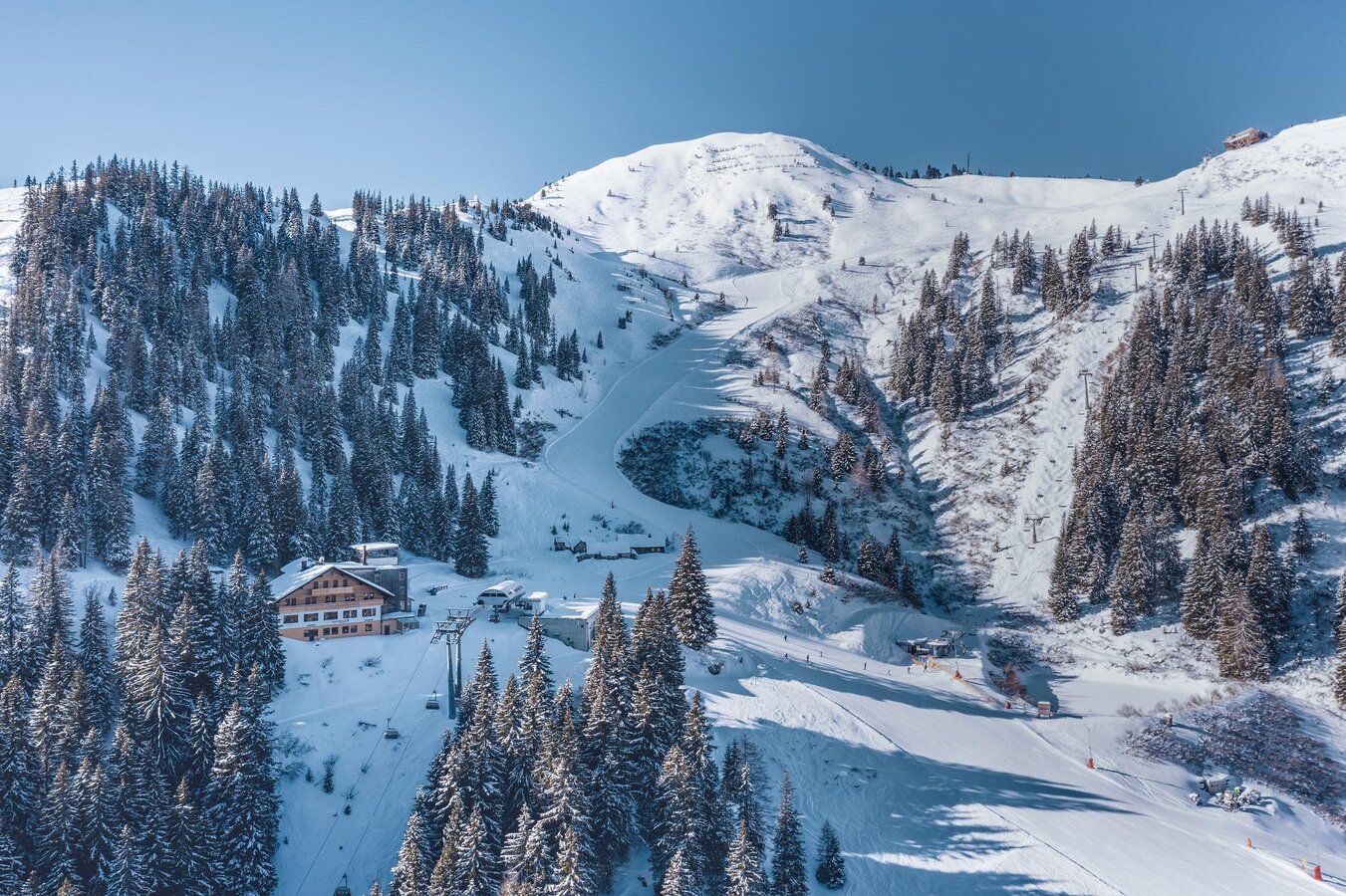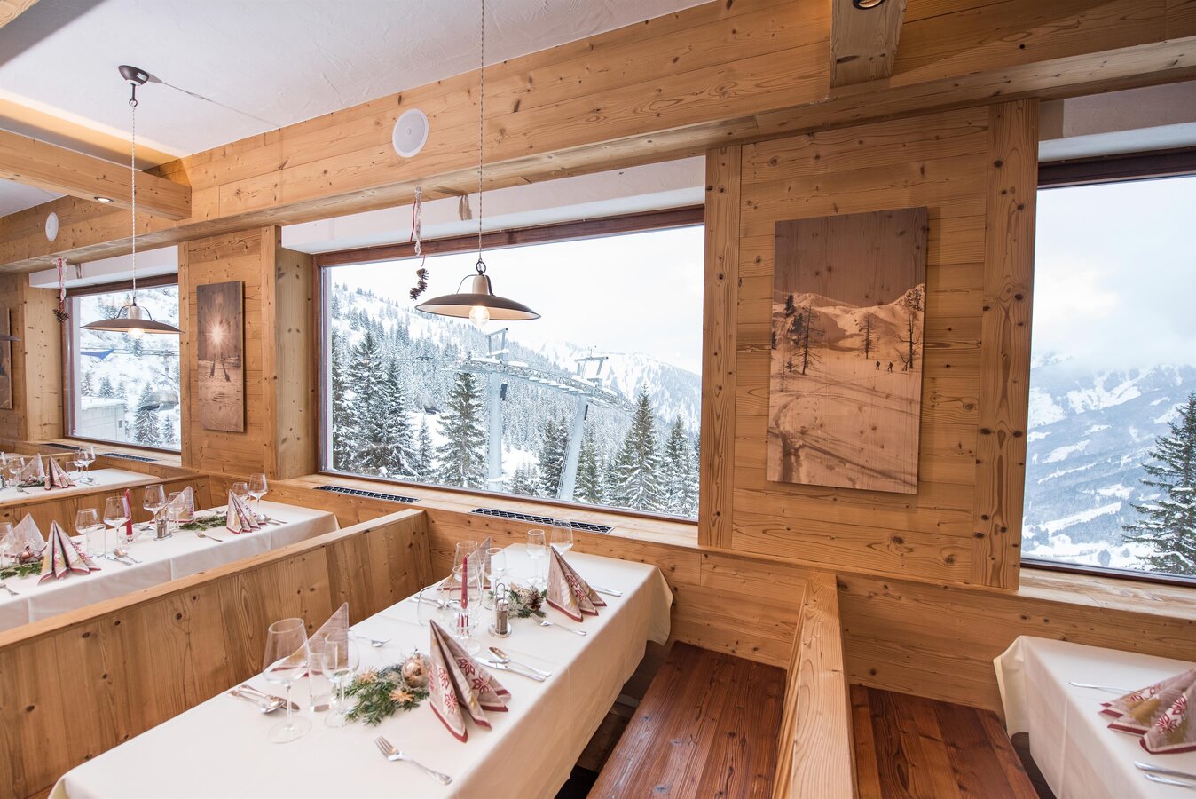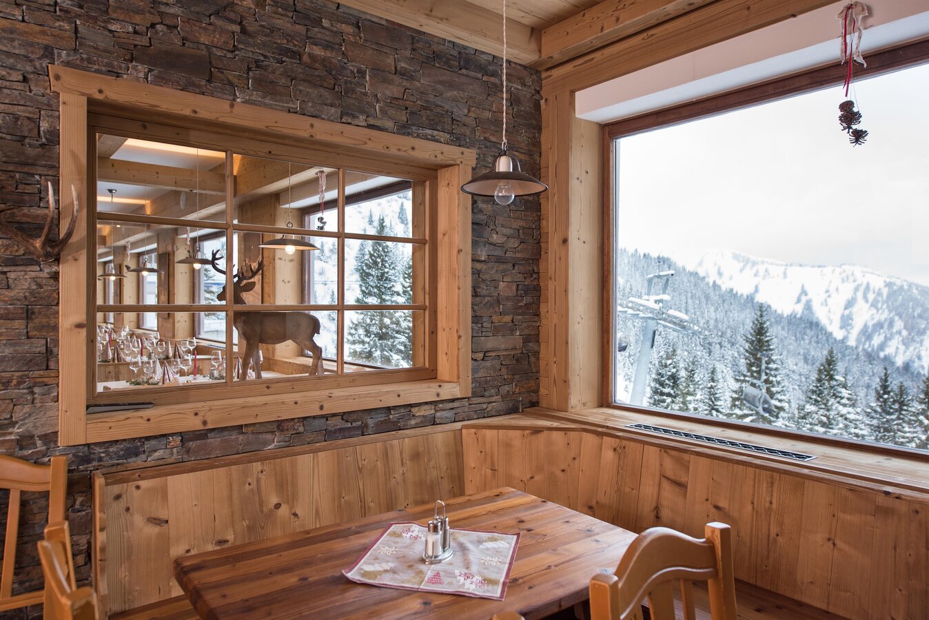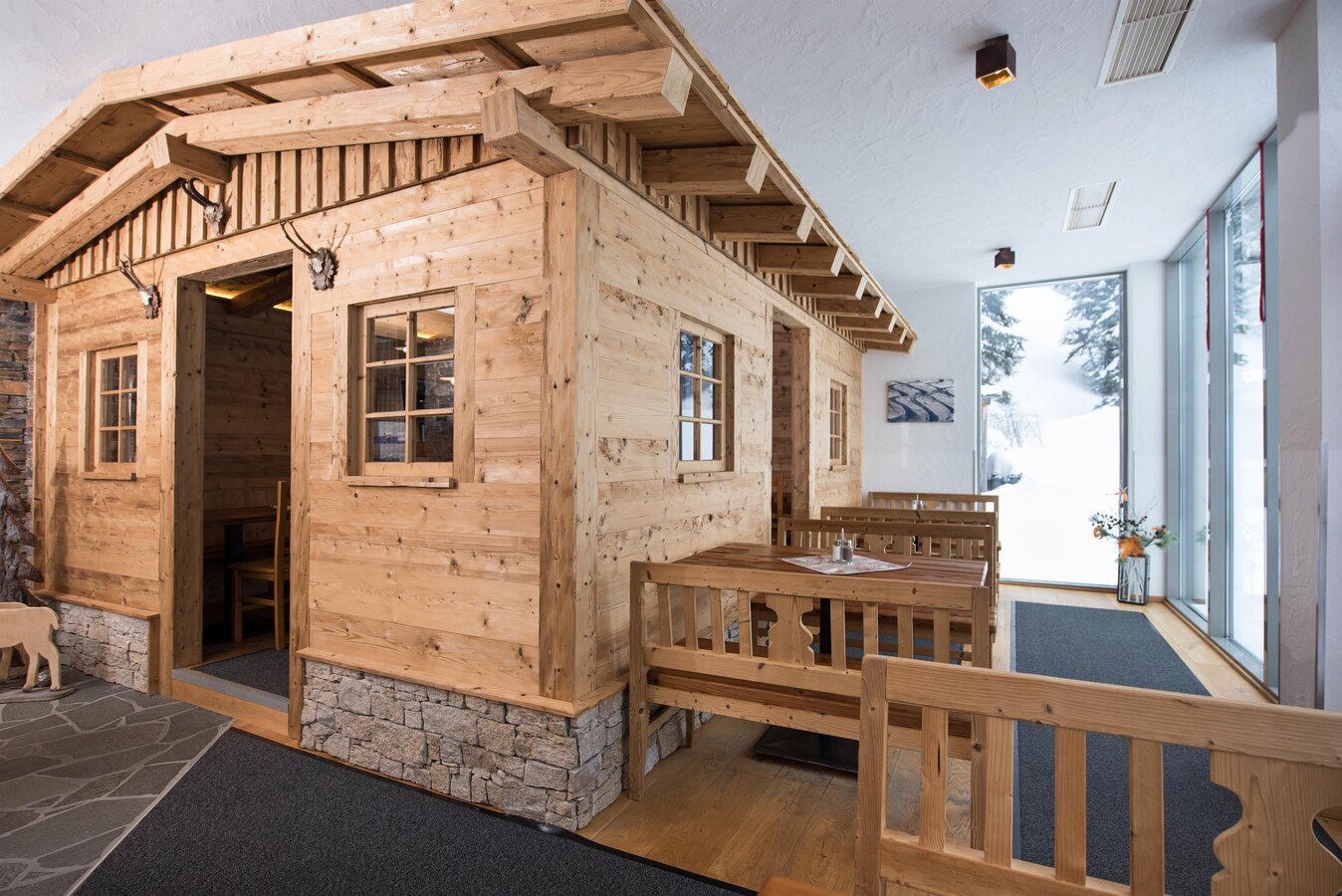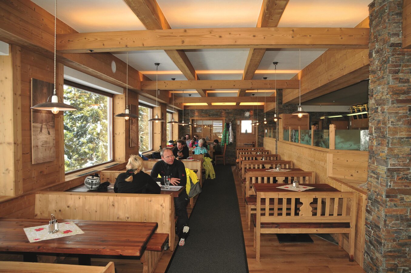 Der neu gestaltete Restaurantbereich vermittelt den Hotelgästen eine traditionelle und urige Atmosphäre für ein gemütliches Beisammensein mit Familie, Freunden oder Ihrem Partner. Genießen Sie den einmaligen Vorteil direkt von der Unterkunft in das Wintervergnügen einzusteigen. Noch dazu können Sie garantiert die ersten Schwünge auf die frisch präparierten Pisten oder tiefverschneiten Pulverschneehänge ziehen, da der Skibetrieb erst später öffnet.