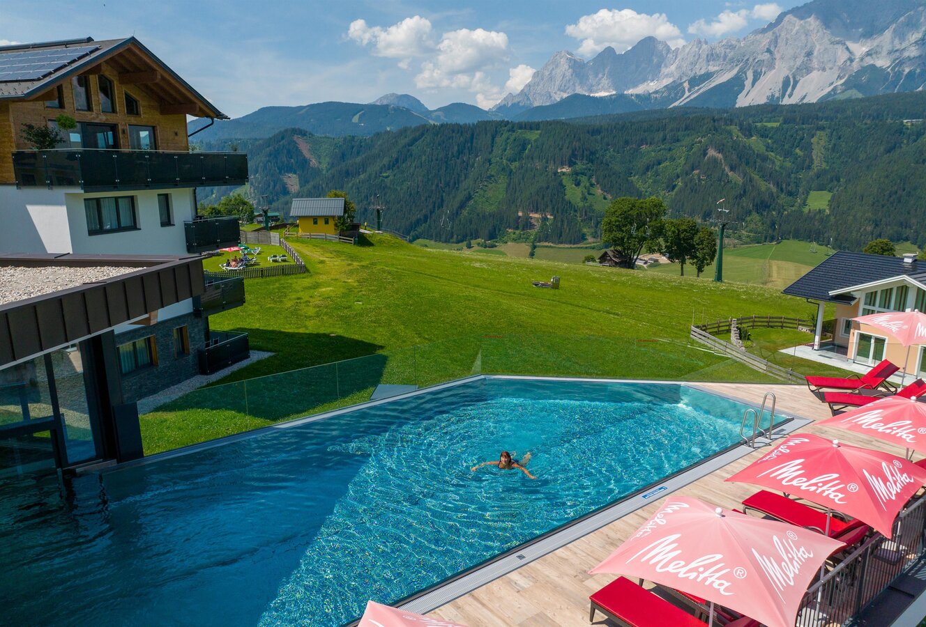Eingebettet in die malerische Berglandschaft der Schladminger Tauern, liegt das Hotel an einer Toplage direkt an den Skipisten und Wander- & Bikewegen. Den Wintersportlern, Wanderfreunden und Mountainbikern erschliessen sich so in wenigen Minuten die Schladminger Berghöhen und ein herrliches Bergpanorama.