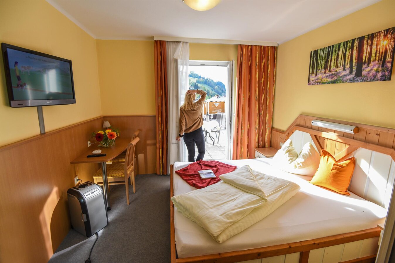 Im Hotel Garni Erlbacher wohnen Sie in einem unserer freundlich und hell eingerichteten Doppel- oder Familienzimmer und einem Appartement voll ausgestattet mit einer großen Küche, Wohn-Schlafraum und 2 getrennten Doppelzimmern. All unsere Zimmer sind top ausgestattet: Dusche/WC, Kabel-TV (38 Programme) und kostenlosem W-Lan. Um gestärkt in den Tag zu starten, servieren wir Ihnen ein reichhaltiges Frühstücksbüfett.