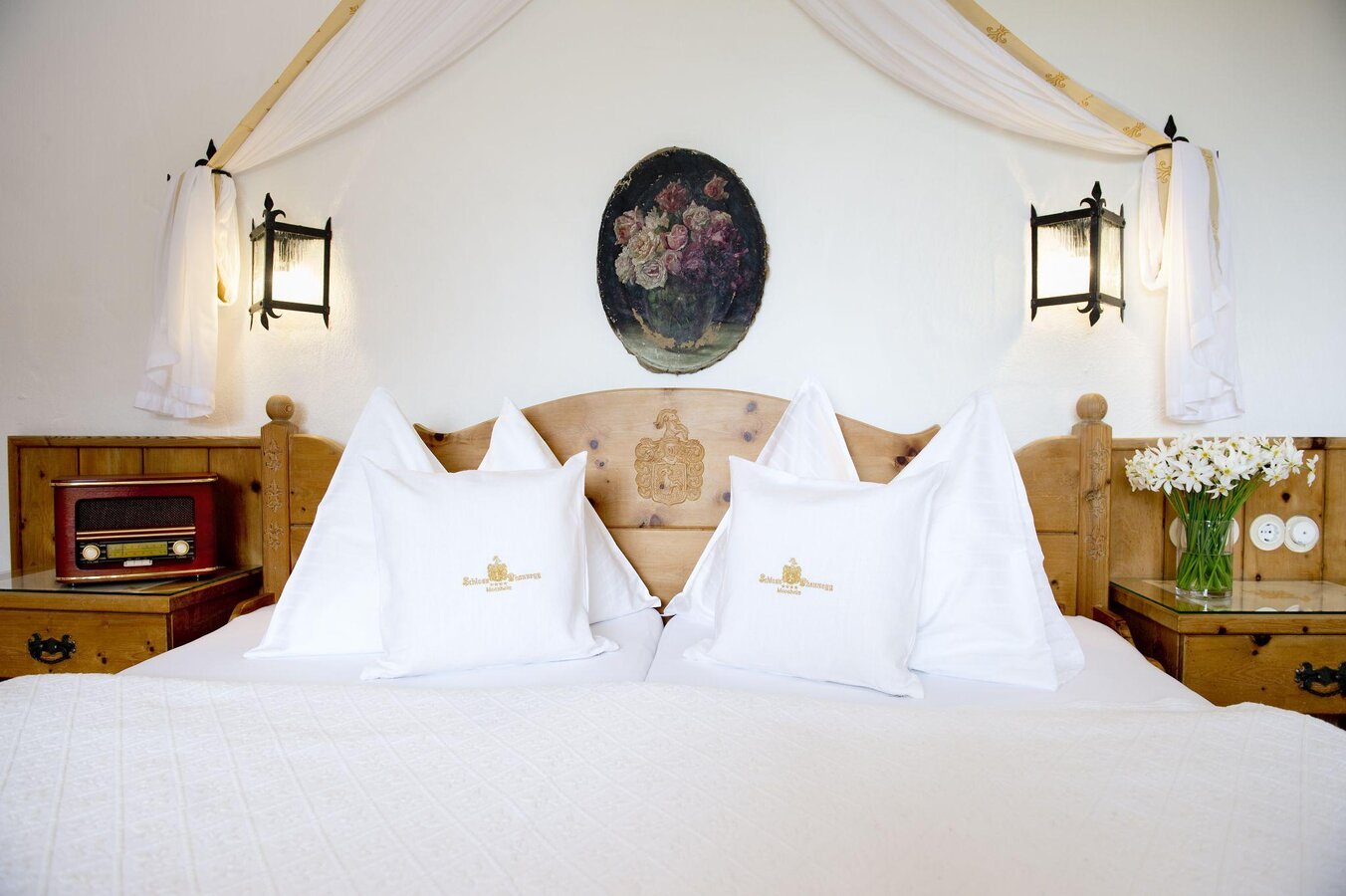 Schlossromantik pur in den ruhigen, kuscheligen, wohlig warmen, zirbenholzduftenden Gemächern, auf der Sonnenterrasse am Schloss-Teich oder im historischen Gewölbe von anno 1150.