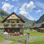 Almhütte in der Tuchmoaralm in Kleinsölk, die selber den traditionellen "Ennstaler Steirerkäse" und einen köstlichen Almbutter herstellt.