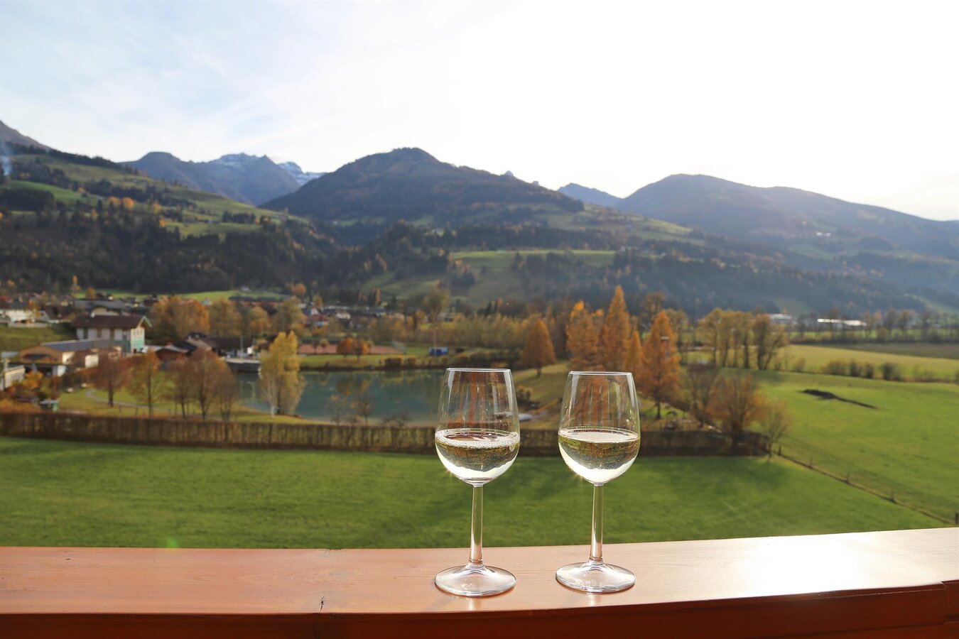 Die Aussicht vom Balkon auf die umliegende Bergwelt und den Aicher Badesee ist einfach traumhaft.