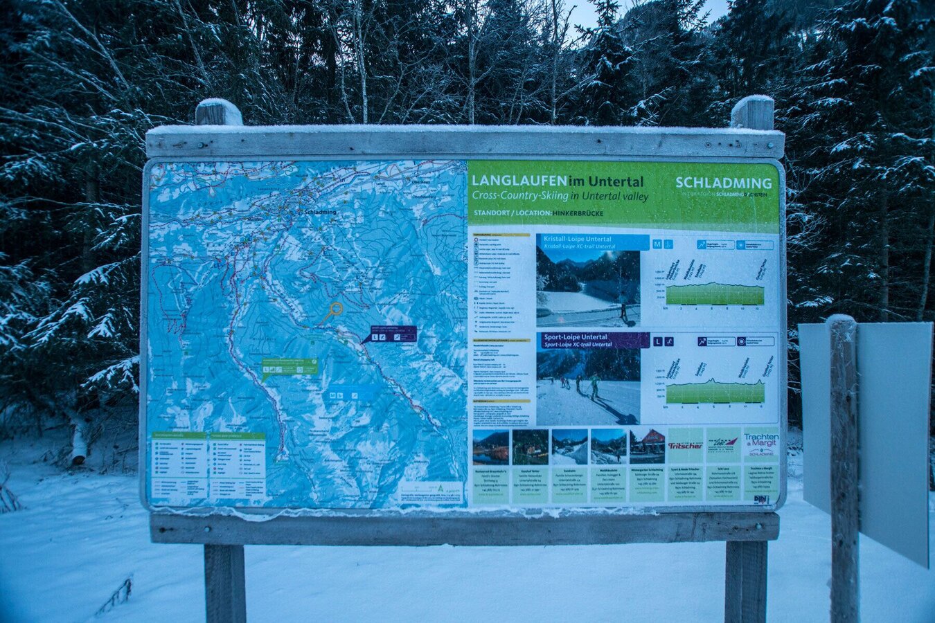 Die Kristallloipe im Untertal ist eine klassisch gespurte Langlaufloipe und ein wahrer Geheimtipp für Langläufer. Der herrliche Blick zu den Bergriesen des Klafferkessels, die linkseitig vereisten Rinnen des „Ofnach“ , immer wieder am kristallklaren Wasser des Untertalbaches entlang, ist diese Loipe wohl ohne Übertreibung eine der schönsten Loipen in der Region und eine regelrechte Genussloipe. Speziell an kalten Wintermorgen offenbart sich, woher die Loipe ihren Namen hat.