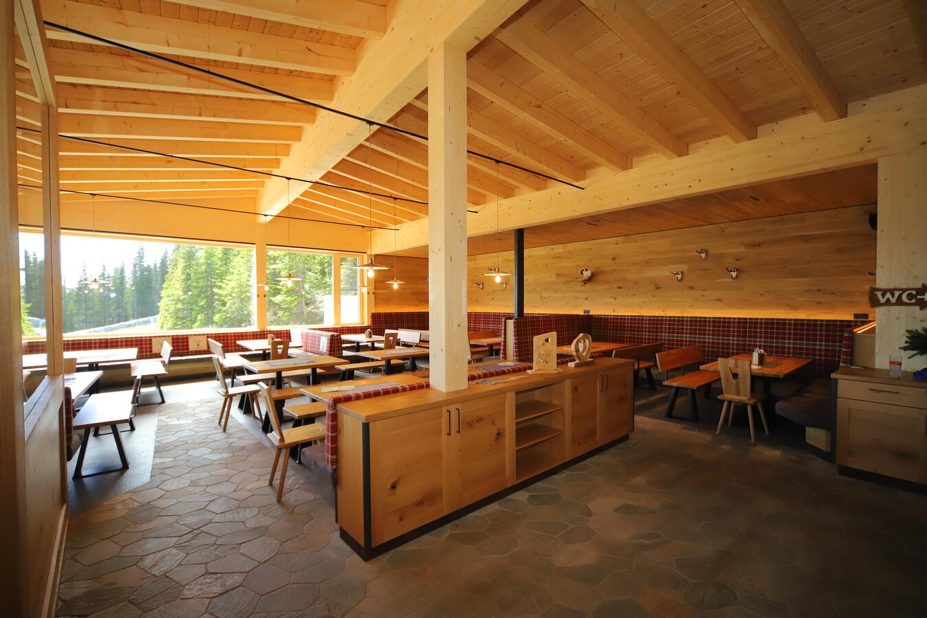Urige Hütte mit großer Sonnenterrasse. Hier ist der perfekte Treffpunkt für die ganze Familie und verwöhne Dich mit heimischen Spezialitäten aus der eigenen Landwirtschaft.