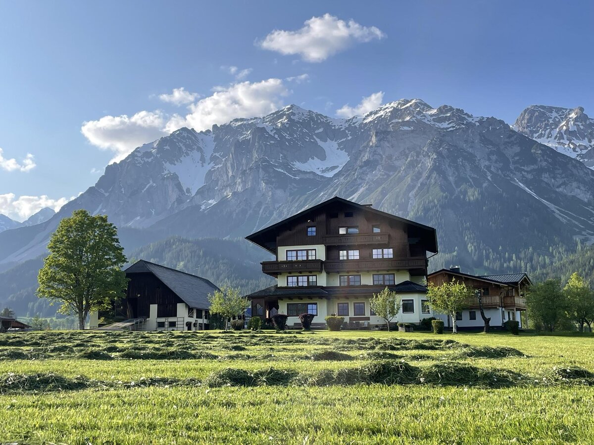 Ruhig und offen, inmitten eigener Wiesen und Felder, liegt der Möslehnerhof zentral in Ramsau am Dachstein, umgeben vom Bergpanorama des Dachsteinmassivs und der Schladminger Tauern.