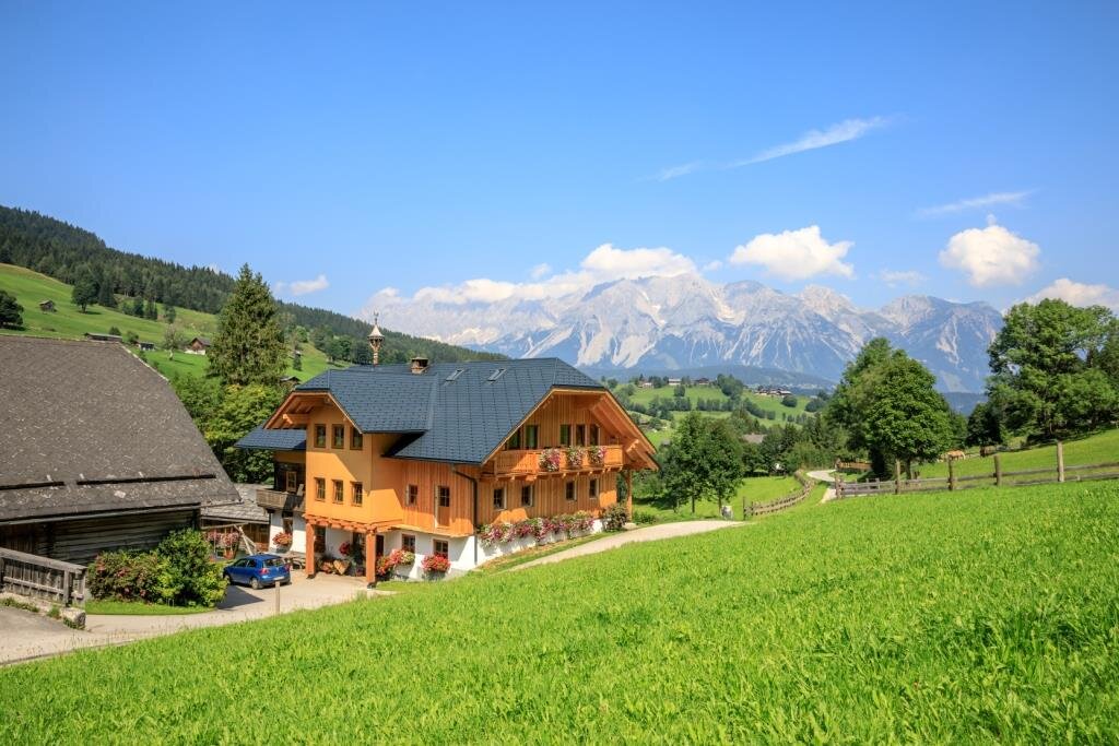 Unser Bauernhof befindet sich direkt an der Ski-/Wanderbushaltestelle und ist im Sommer ein idealer Ausgangspunkt für Wanderungen in der Region Schladming-Dachstein. Ebenso können Sie zahlreiche Rad- und Mountainbiketouren direkt von unserem Haus starten. Die Sommercard bietet Ihnen ebenfalls viele verschiedene Freizeitmöglichkeiten. Auch Ihre Kinder werden den Urlaub bei uns genießen, sei es am Spielplatz, am Trampolin, bei einer wilden Fahrt mit einen der Go-Karts oder bei einem Besuch im Stall bei unseren Milchkühen.