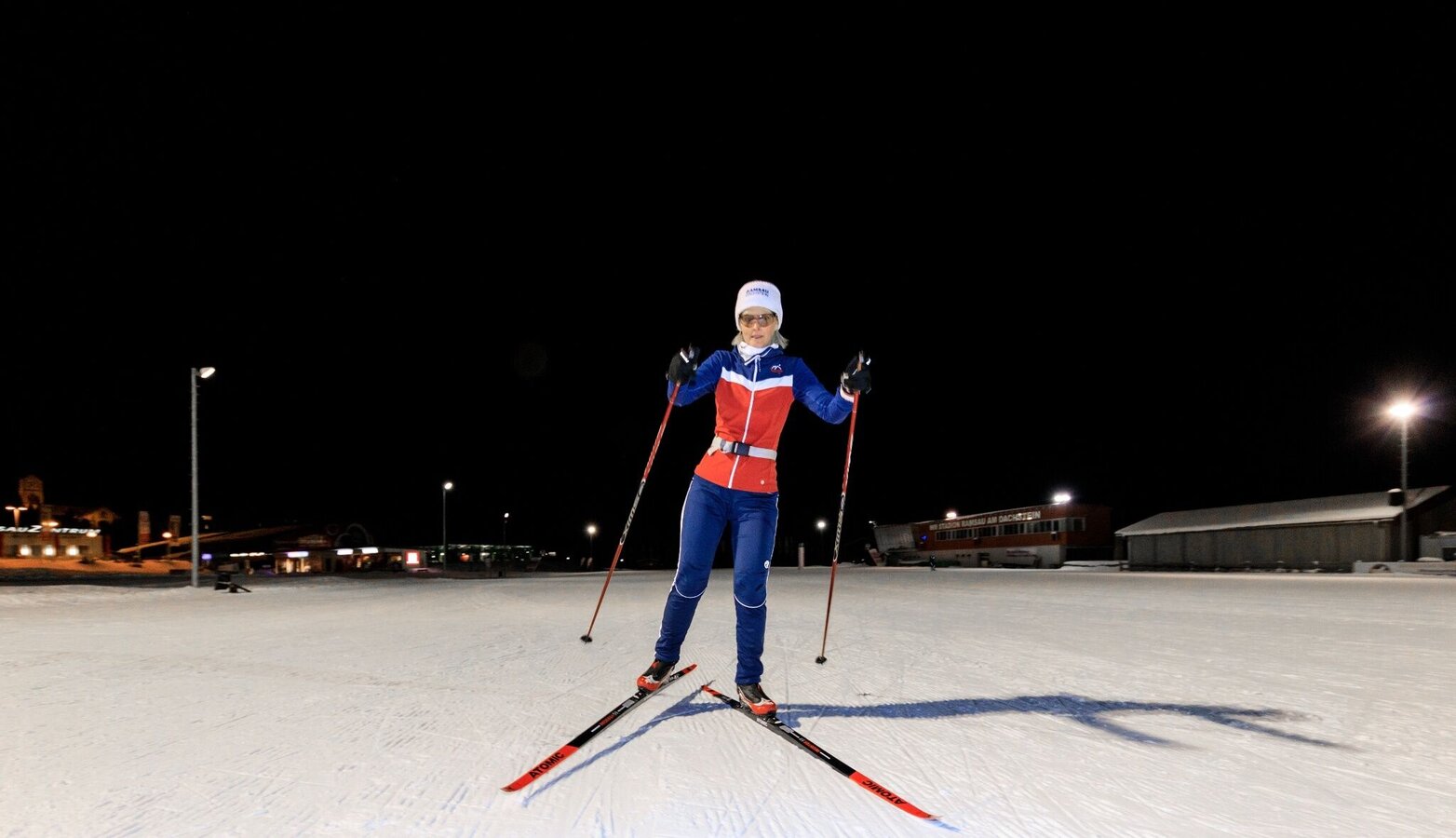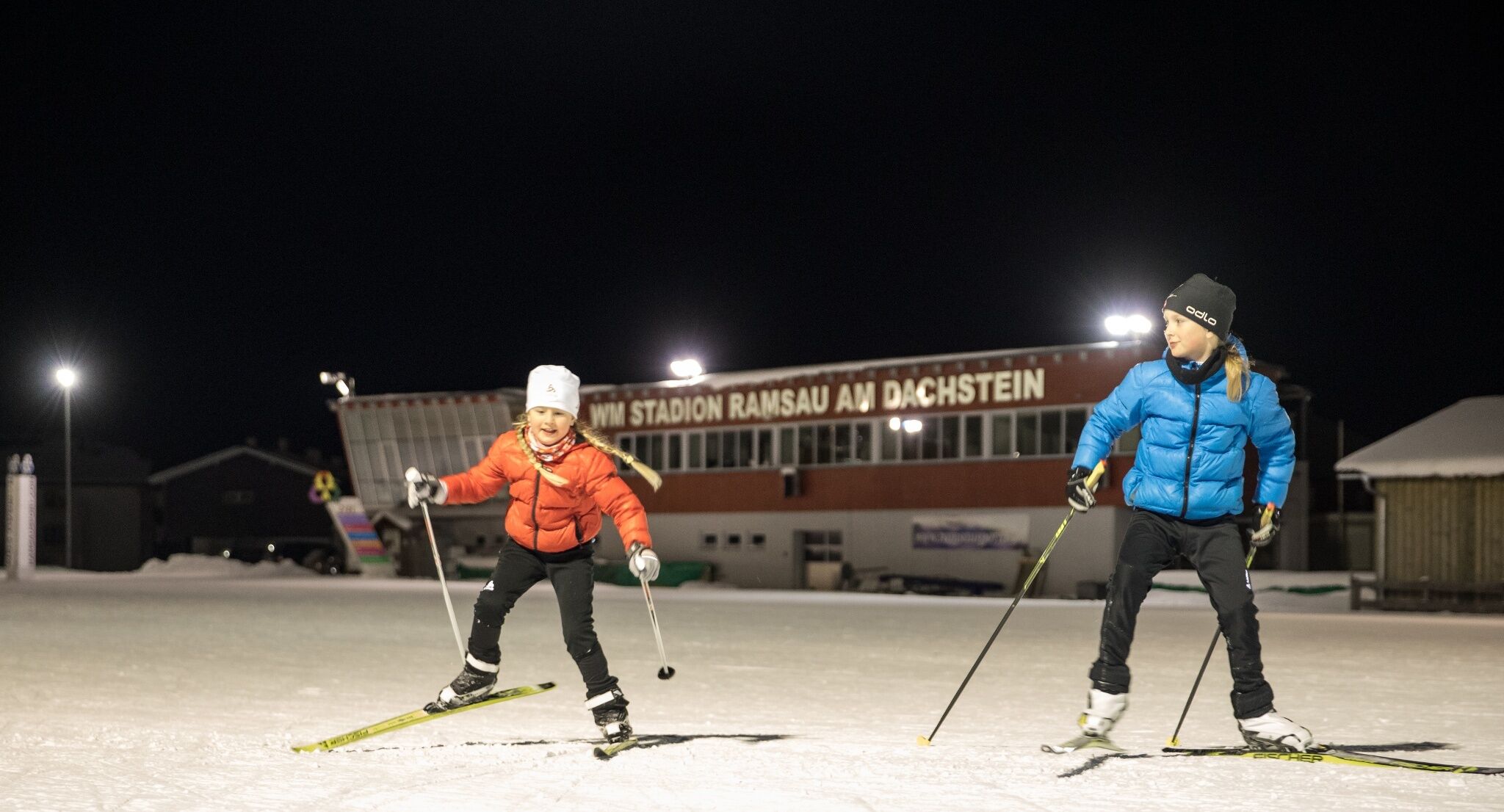 Wenn die letzten Sonnenstrahlen hinter den Bergen verschwinden, geht auch am Sonnenplateau der Tag zu Ende. Das Langlauf-Vergnügen ist dann aber noch nicht vorbei. Mehrere Spuren im WM-Stadion und ein Teil der Standardloipe West sind abends beleuchtet. So gibt es in Ramsau am Dachstein nahezu grenzenlose Loipenerlebnisse.