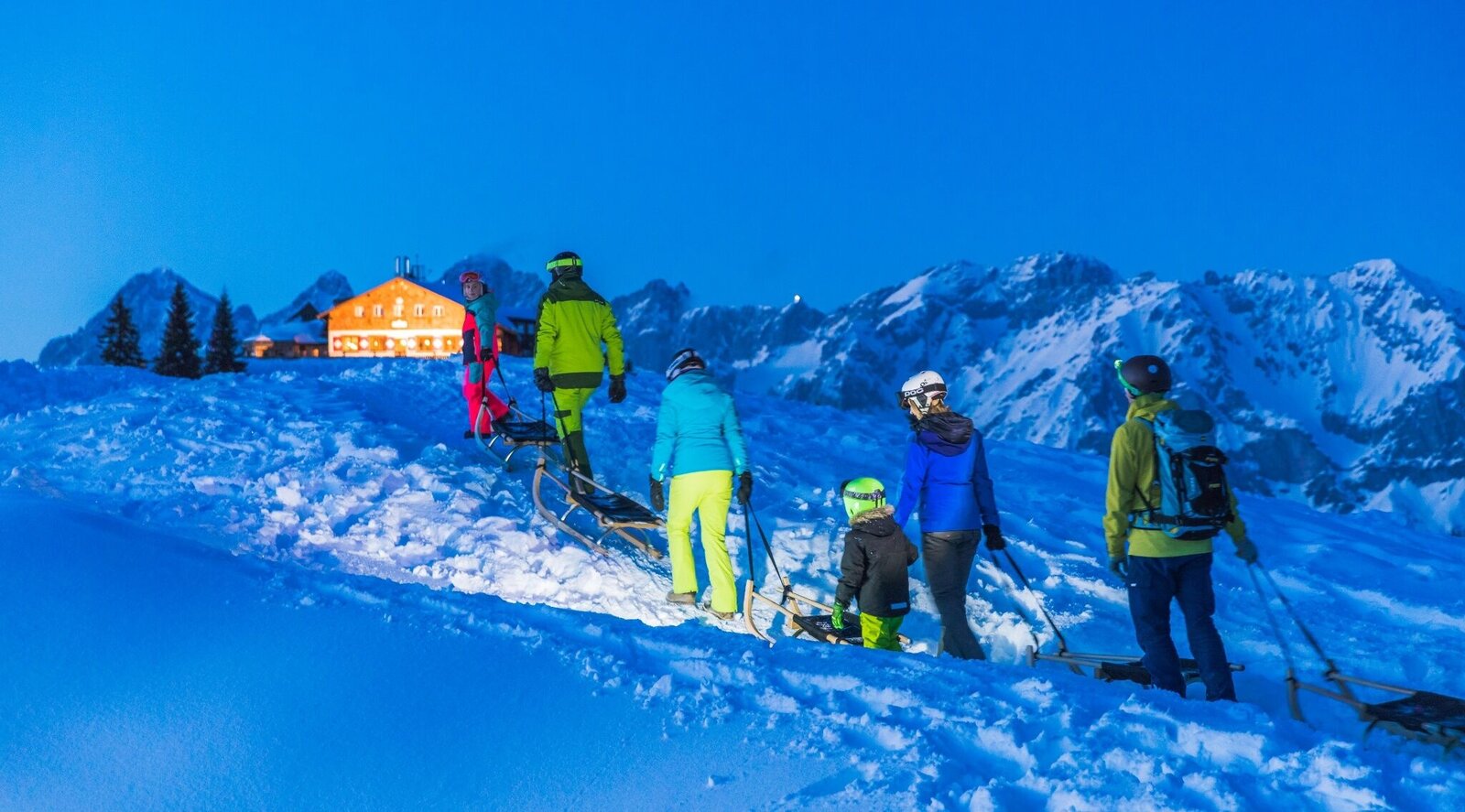 Die Rodelbahn bringt Dich von dort direkt zurück zur Talstation der Gipfelbahn, sodass sich an einem Abend - neben einer gemütlichen Hütteneinkehr - gleich mehrere flotte Rodelpartien ausgehen! In den Hütten – direkt an der Rodelbahn gut verteilt vom Startpunkt bis ins Ziel - ist auch ausreichend Platz für größere Gruppen. Vom Gipfel hast Du nachts außerdem einen tollen Blick über das beleuchtete Ennstal.