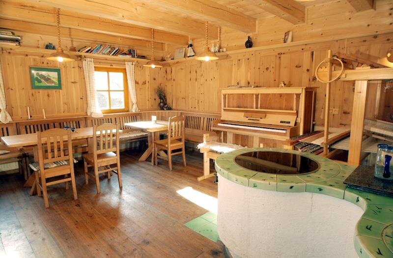 Baubiologisch eingerichteter Gasthof = Haupthaus befindet sich eine Gaststube , eine Sonnenterasse, das Spielzimmer, ein kleines Empfangbürio, die Hauptküche, eine Erd- Gewölbekeller sowie sechs Ferienwohnungen mit Kochgelegenheiten.