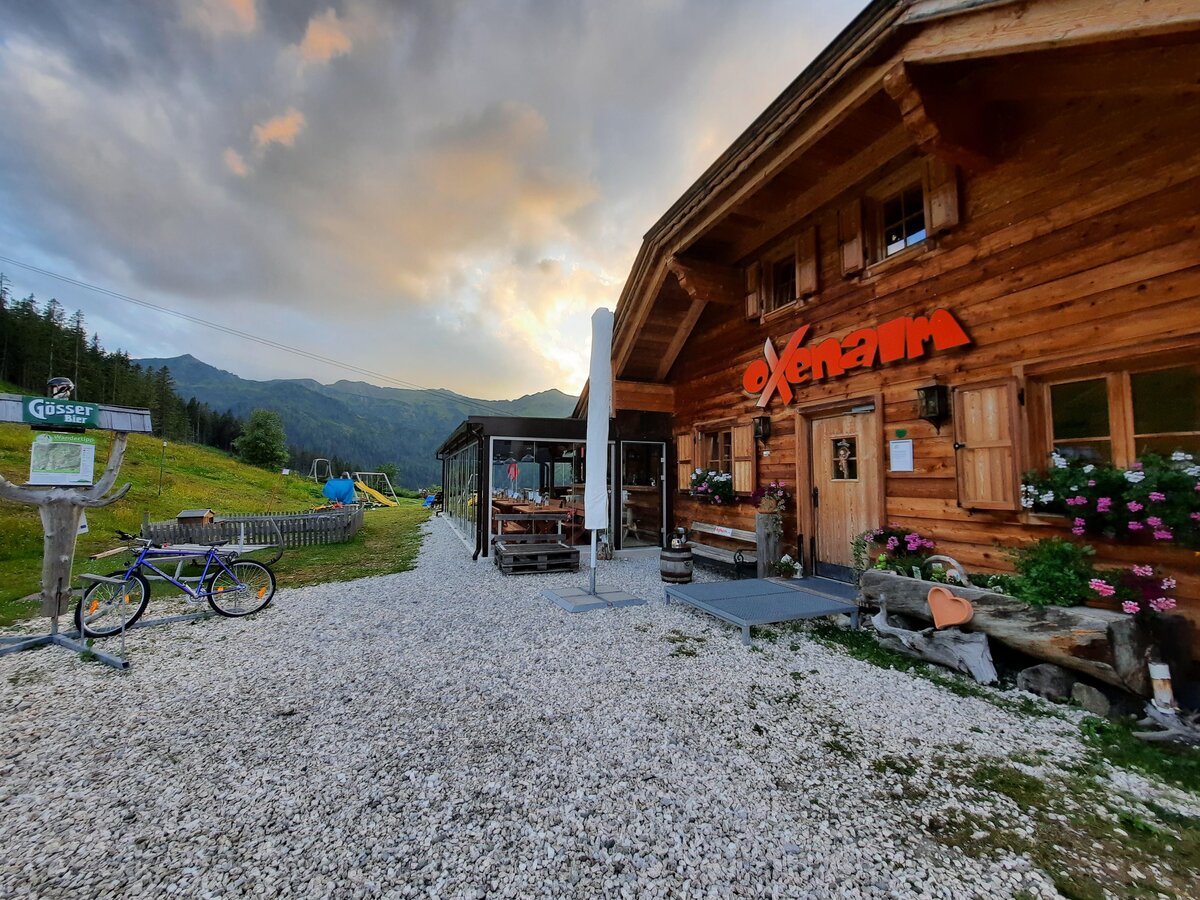 ist die Oxenalm von Donnersbachwald in ca. 1 ½ h zu Fuß oder in 1 h mit dem Bike auf gut markierten Wegen und Pfaden sowie von der Riesneralm Bergstation zu Fuß bergab in ca. ½ h (Seilbahnbetrieb von Freitag bis Montag).