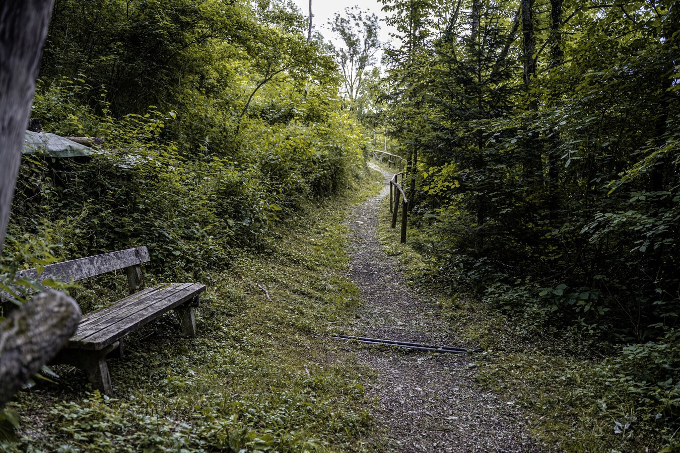 Durch den Ort hindurch bietet sich ein Blick auf die markante Felsformation der Trautenfelser Kletterwand. Nach der Überquerung der Bundesstraße führt der Waldesruhweg durch Wälder und Wiesen. Nach dem Überqueren der Bahnstrecke läufst du ein kurzes Stück auf der Straße Richtung Pürgg, biegst jedoch bald links ab und folgst dem Marterlweg in einer langgezogenen Serpentine bergauf.