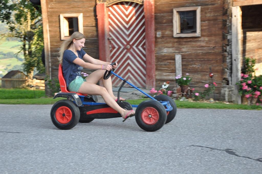 In unserem großen Garten lassen Sie die Seele baumeln, während sich Ihre Kinder im Sandkasten, auf dem Kletterturm, Trampolin, mit Go-Karts nach Herzenslust austoben. Abends dürfen die Kinder mit dem Stallherren bei der Arbeit im Stall mithelfen, in dem sich unsere Hasen, Katzen, Enten, Ziegen und Schweine schon auf viele Streicheleinheiten freuen.