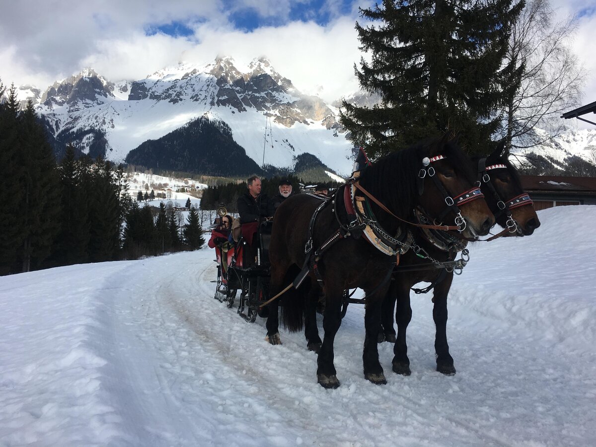 Nehmen Sie Platz und lassen Sie sich vom Hausherrn Bernhard durch die Winterlandschaft rund um den Kulmberg mit Blick auf das Dachsteinmassiv oder den Tauern kutschieren.