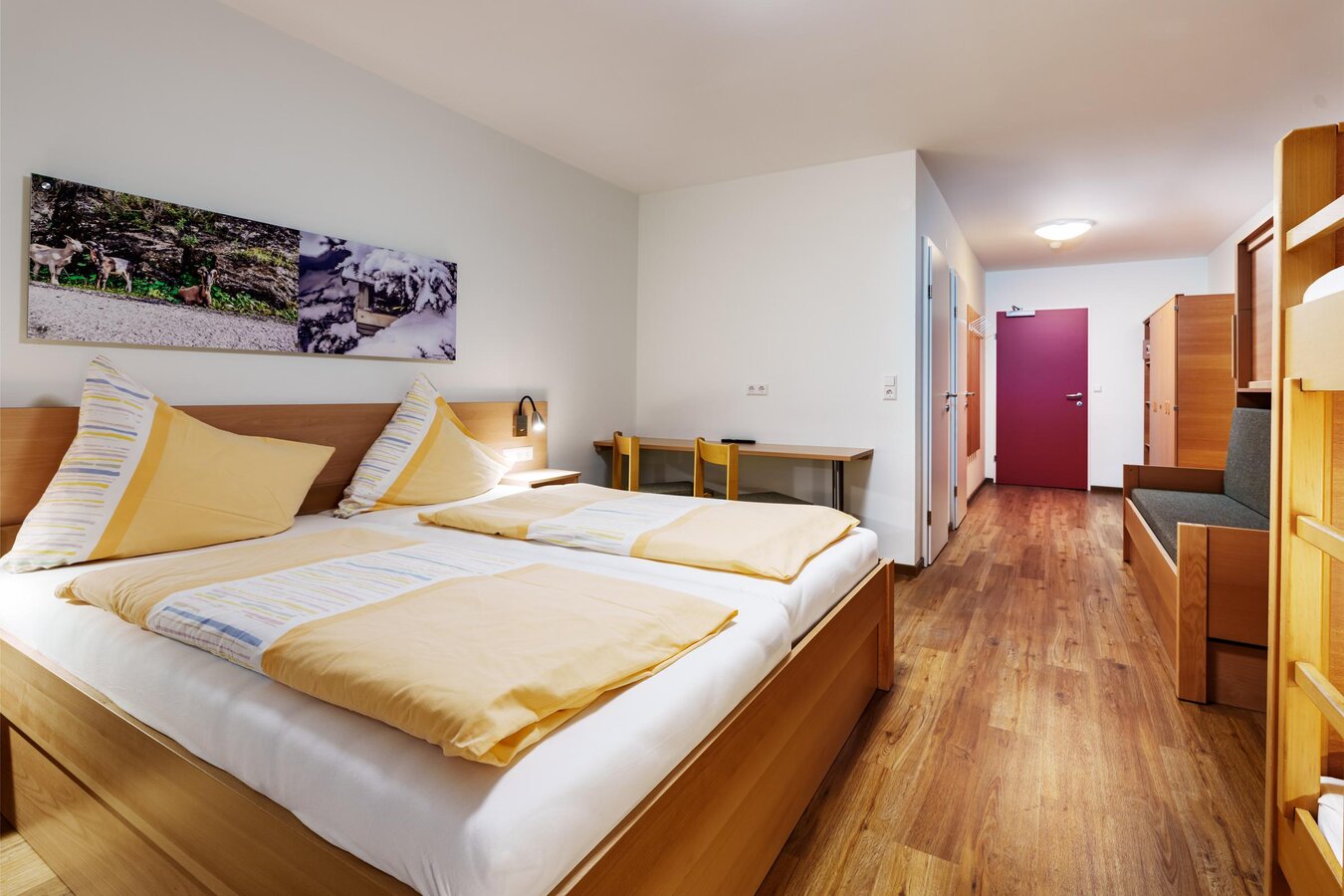 Ob in der Suite, im Doppel- oder Mehrbettzimmer - bei uns liegst Du auf jeden Fall richtig (gut ;-). Für das gemütliche Beisammensein zum gegenseitigen Austausch oder für Spiel und Spaß bieten wir einen großen Aufenthaltsraum. Morgens verwöhnen wir Dich mit einem köstlichen Frühstück.