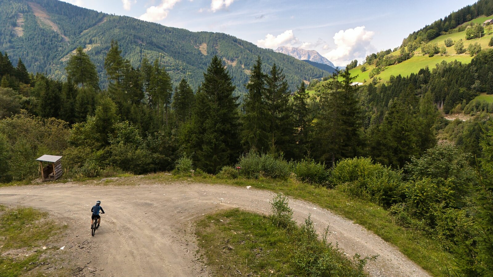 Die Abfahrt führt dich durch eine herrliche Berglandschaft in Richtung Donnersbach. An der Schaab Reith Kehre biegst du links ab – Wichtig: Dieser Abschnitt ist nur vom 15. Juni bis 30. September befahrbar, um die Wildtiere nicht zu stören. Ist der Weg gesperrt, folge bitte der asphaltierten Straße weiter bergab.