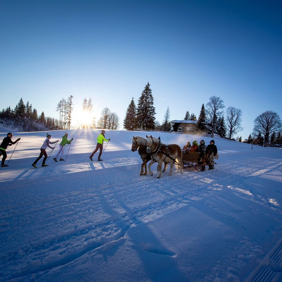 Zweifellos zählt eine Pferdeschlittenfahrt in der Ramsau zu den schönen Dingen, die Sie auf keinen Fall versäumen sollten. Denn kein Winterurlaub ist wirklich vollendet, ohne den Blick über die weiß glitzernden Wiesen und idylisch verschneiten Wälder ziehen zu lassen.