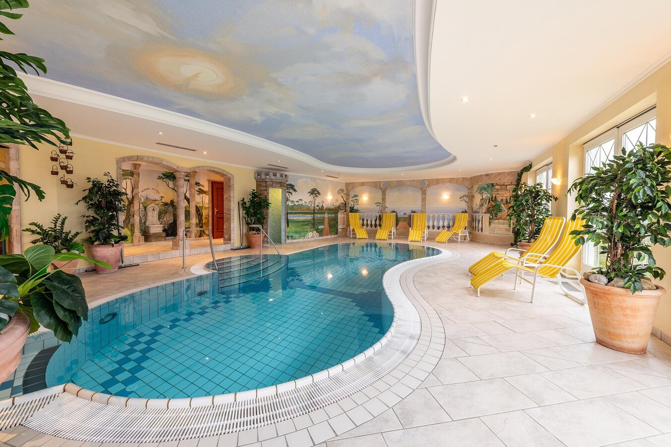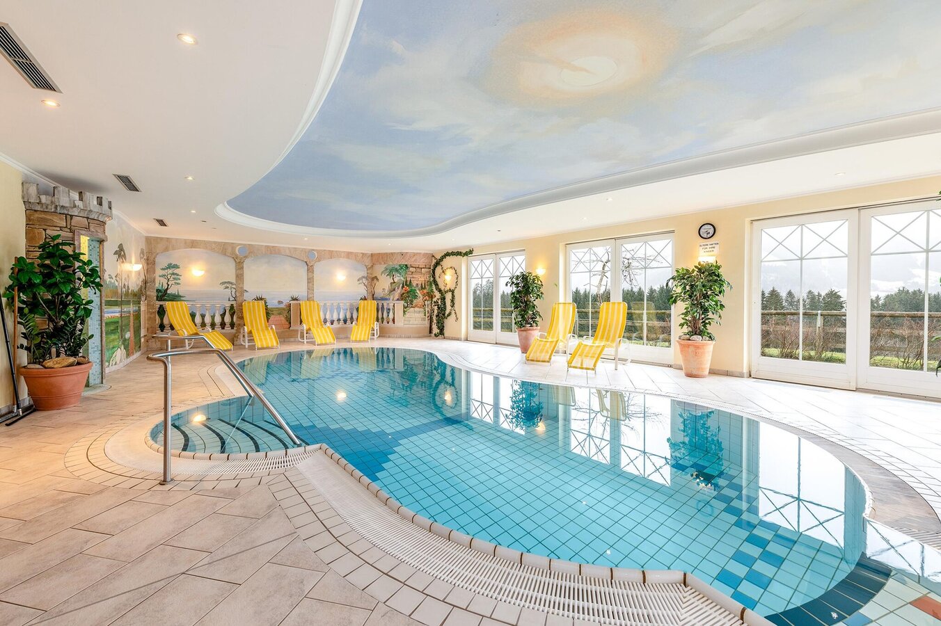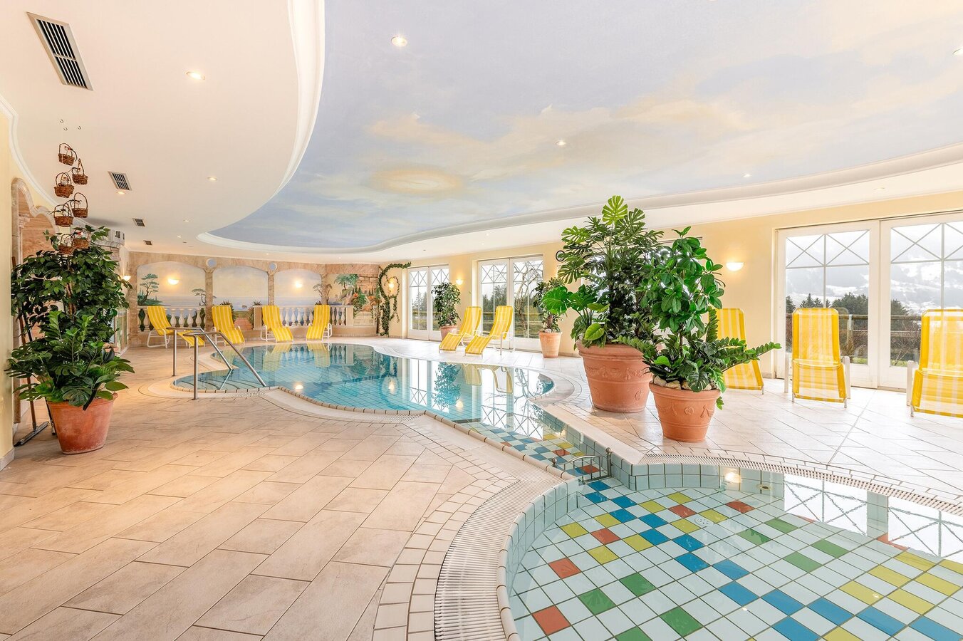 - Hallenbad mit abgetrenntem Wellnessbereich: Ein beheiztes Hallenbad läd zum Entspannen nach dem Wandern oder Schi fahren ein. Ergänzt wird dieses durch einen separaten modernen Wellnessbereich mit verschiedenen Saunen & Infrarotkabinen sowie einem Ruheraum.