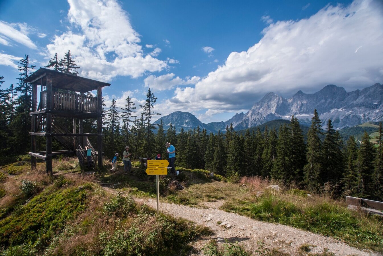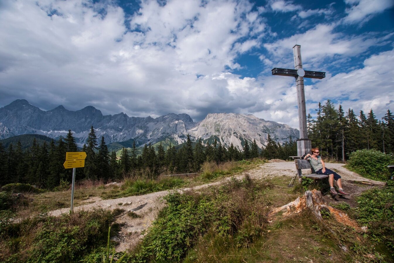 Den Aufstieg kannst Du gemütlich mit der Seilbahn erledigen und überwindest somit die meisten Höhenmeter - wenn Du es aber sportlich angehen möchtest empfiehlt sich der spannende Aufstieg über den Märchenweg. Ab der Bergstation Rittisbergbahn wanderst Du am Rittisstadl vorbei auf einem gemütlichen Forstweg zum impossanten Rittisberg Gipfelkreuz. Nach der ausgiebigen Rast und dem herrlichen Blick auf die Dachstein Südwände und in die Schladminger Tauern folgst Du dem Forstweg weiter in Richtung Westen. Der Weg verliert nun an ein paar Höhenmeter und führt Dich über den Panoramaweg Süd wieder leicht steigend zurück hinauf zum Ausgangspunkt.