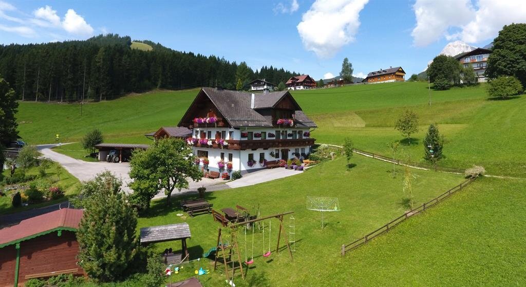 In herrlicher ruhiger Lage auf 1100 Metern Seehöhe im sonnendurchfluteten Ramsau am Dachstein befindet sich unser familiär geführter Ritisserhof. Umrundet von saftigen, grünen Wiesen und in unmittelbarer Nähe zum Rittisberg sind wir der perfekte Ausgangspunkt für Wanderer, Skifahrer und Langläufer. Die Ski- und Wanderbushaltestelle ist in nur 5 Gehminuten erreichbar und bietet Ihnen Anschluss zum Dachsteingletscher, nach Ramsau Ort, sowie nach Schladming. Ein Sportgeschäft samt Ski- und Langlaufschule steht ebenfalls in direkter Umgebung für Sie zur Verfügung. Bei uns im Rittisserhof logieren Sie in geräumigen Ferienwohnungen, die Platz für bis zu 6 Personen bieten und mit jeglichem Komfort ausgestattet sind. Unsere Ferienwohnungen beinhalten je 2 Schlafzimmer, Sat-TV, W-Lan,Küche, geräumige Wohnzimmer mit Kachelofen in einer Ferienwohnung, sowie Balkon mit herrlichem Blick in die umliegende Naturlandschaft von Ramsau am Dachstein. Gerne bieten wir unseren Gästen einen Brötchenservice an. Ramsau am Dachstein gilt nicht erst seit der Nordischen Skiweltmeisterschaft 1999 als Eldorado für Wintersportbegeisterte. Was gibt es Schöneres, als direkt vom Rittisserhof in das über 220 Kilometer bestens gespurte Loipennetz zu starten ? Auch der Skiberg Rittisberg bietet zahlreiche Attraktionen angefangen von perfekt präparierten Pisten, darunter auch die beliebten Kalis Erlebnispisten für Kinder, eine Nachtrodelbahn, sowie spannende Schneefeste. Und das alles befindet sich nur 5 Gehminuten vom Rittisserhof entfernt. Doch nicht nur im Winter ist in Ramsau am Dachstein viel geboten. Über wunderschöne Panoramawanderwege gelangen Sie zu den schönsten Almen und Hütten der Region und wer einmal echten Nervenkitzel sucht, wagt sich an einen der zahlreichen Klettersteige, die Spaß und Abwechslung für die ganze Familie bieten. Nur wenige Minuten vom Rittisserhof entfernt befindet sich am Rittisberg ein Abenteuerspielplatz der Sonderklasse mit Alpin Coaster, Segway Touren, 3D- Bogenparcours, Klettergarten, und dem Badesee Ramsau- Beach. Als Gast am Rittisserhof erhalten Sie zudem eine Sommercard mit der Sie freien Zutritt zu Attraktionen wie Seilbahnen, Bussen, Mautstraßen etc. in der ganzen Region Schladming- Dachstein genießen. Für ein wundervolles Urlaubserlebnis für die ganze Familie in Ramsau am Dachstein ist der Rittisserhof die ideale Adresse. Wir freuen uns auf Sie, Ihre Familie Bachler