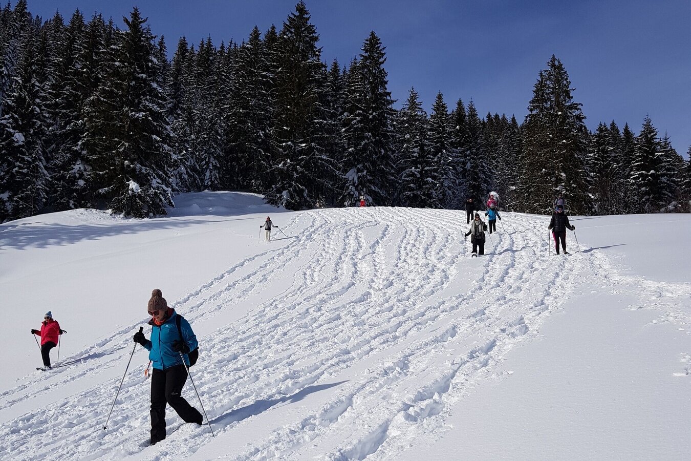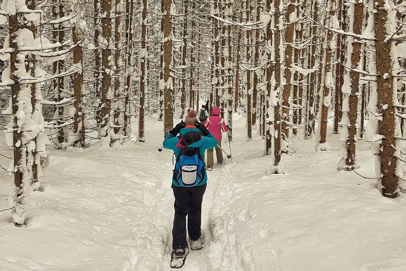 Schneeschuhe sowie Stöcke mit großen Schneetellern. Außerdem knöchelhohe, warme Schuhe, warme Kleidung, Handschuhe und Haube. Eventuell ein kleiner Rucksack mit einem warmen Getränk in der Thermoskanne.