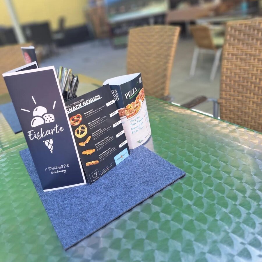 Neu: Snacks (Pizzen, Baguettes, Holzfällerbrot), Mehlspeisen, Eis etc.