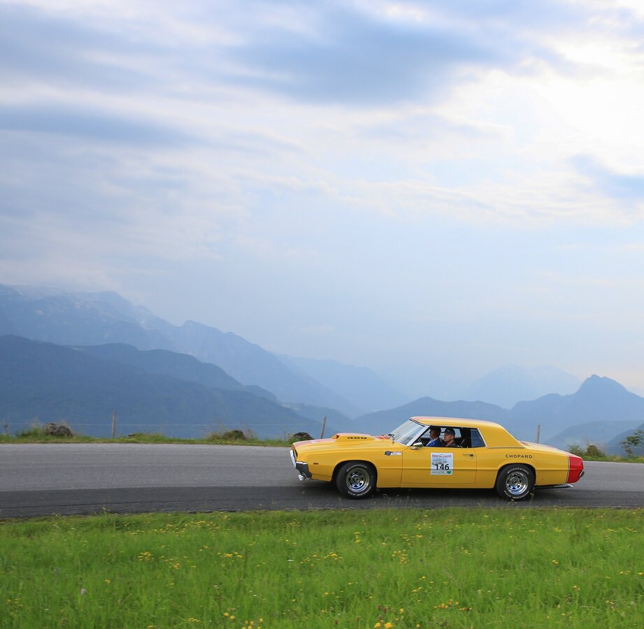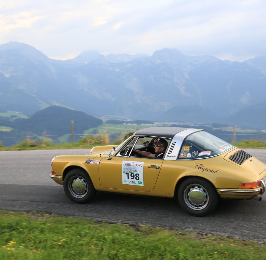 Die Landschaft erweckt geradezu Sehnsüchte nach der Sommerfrische. Seenblau und Waldgrün, soweit das Auge reicht. Kein Wunder, dass hier die Stars der ENNSTAL CLASSIC bevorzugt ihre Automobile-Akkorde erklingen lassen.