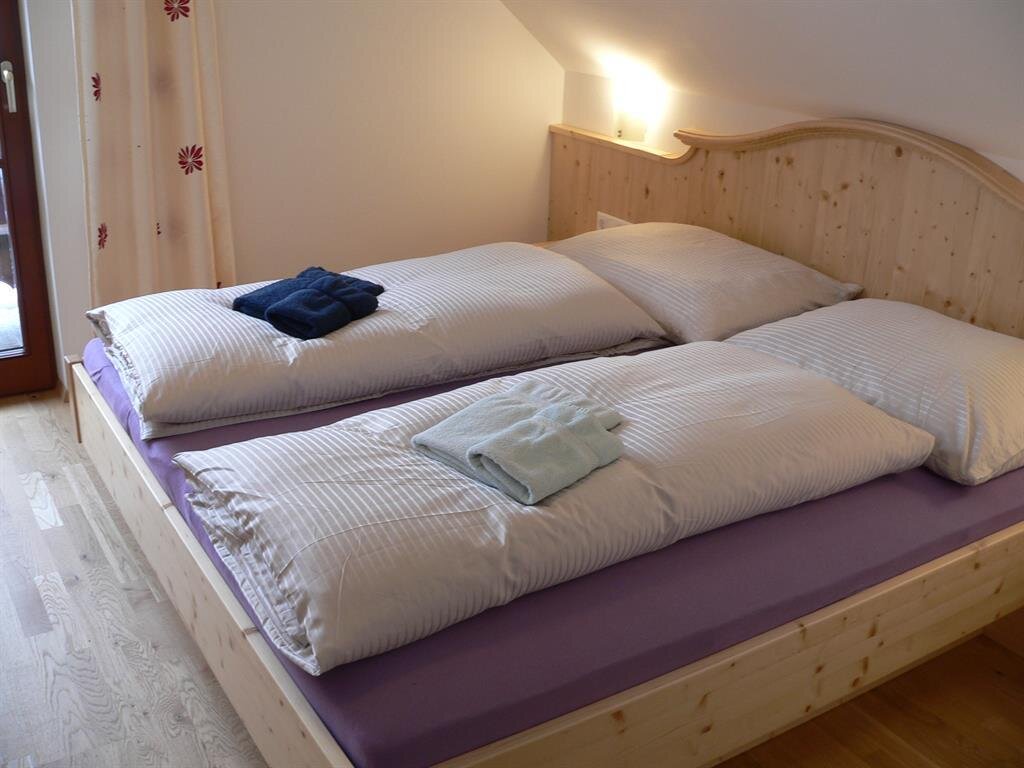 Pension mit Zimmer und Appartements in herrlicher Lage. 1600 m² große Gartenanlage, Kinderspielplatz, Schaukel, etc. Direkt am Wanderweg ins Almgebiet, zum Badesee und Freizeitpark nur 5 min zu Fuß. Im Winter direkt vom Bett auf die Piste und nur unweit zu den Loipen. Appartements für 2 - 6 Personen, komplett eingerichtet. Der Bauernhof ist umgeben von den eigenen Wiesen und Wäldern.