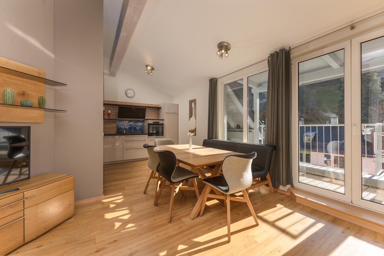 Das wunderschöne und top ausgestattete Appartement Schneider befindet sich in bester Lage - direkt im Stadtzentrum von Schladming - und nur 3 Gehminuten von der Planet Planai Talstation entfernt. Auf einer Wohnfläche von 94 m² finden 4-6 Personen ausreichend Platz. Die Räumlichkeiten teilen sich in eine großzügige Wohnküche mit Süd-Balkon, zwei separate Schlafzimmer mit Doppelbett sowie in zwei Bäder. Die Dachschrägen und hohen Wände verleihen dem Appartement einen ganz besonderen Charme. Annehmlichkeiten wie kostenfreies Wlan, Kabel TV, eine Waschmaschine im Appartement sowie ein Ski-/ und Fahrradabstellraum runden das Angebot ab.