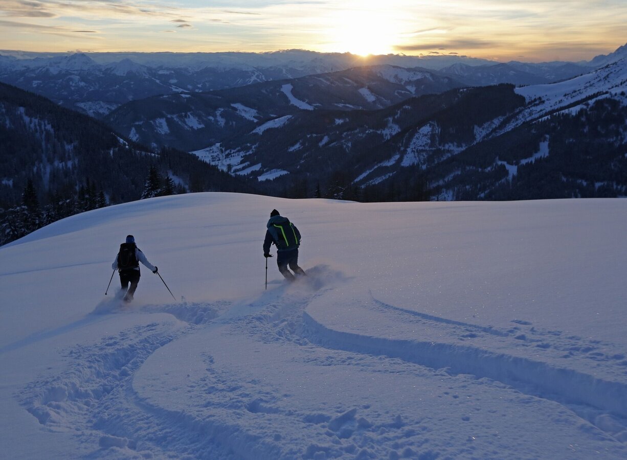 Natürlich findest Du in der Region Schladming-Dachstein zahlreiche Anbieter, die Dich beim Start in Deine Skitourenkarriere unterstützen, Dir die richtige Aufstiegs- und Abfahrtstechnik beibringen oder bei anspruchsvolleren Unternehmungen Deine Tourenplanung übernehmen und Dich sicher durch das hochalpine Gelände führen.