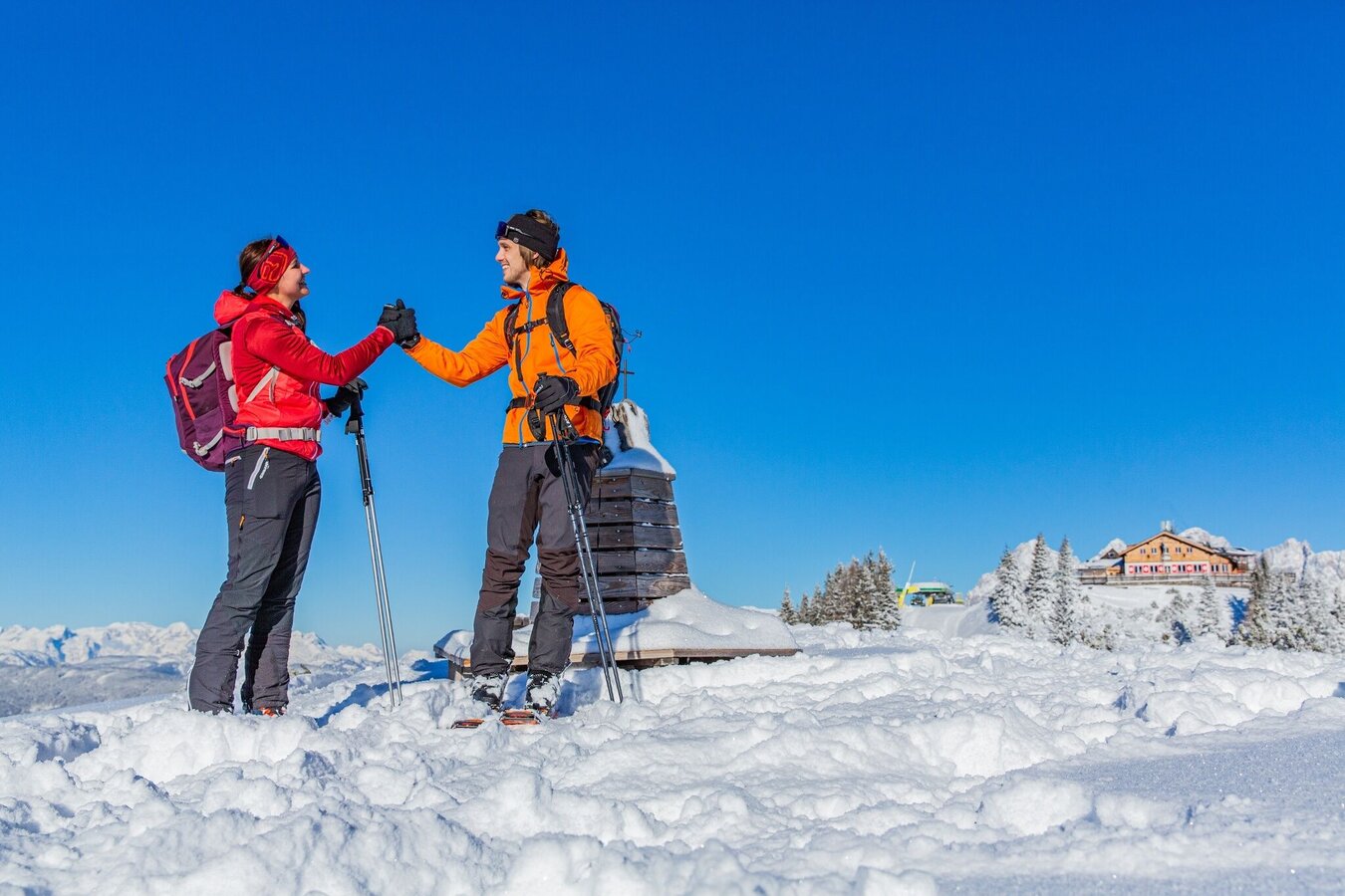 Auf dieser beliebten Tour folgst Du der Aufstiegsspur entlang der Piste Nr. 33 und steigst anschließend links (östlich) von der Piste weiter aufwärts Richtung Hochwurzen. Vorbei an der Bergstation der Obertalbahn und der Seiterhütte erreichst Du den Gipfel auf 1.850 m – mitsamt der beliebten Hochwurzenhütte.