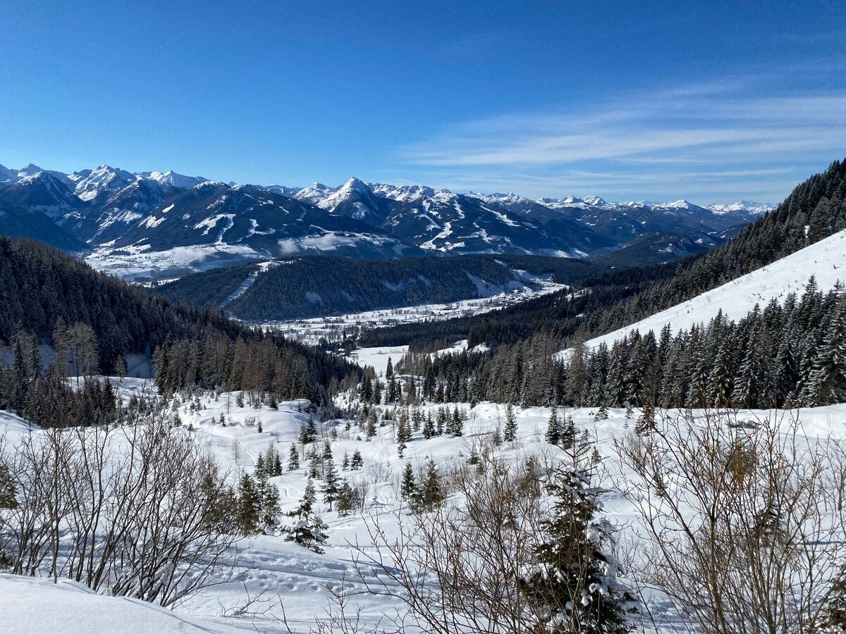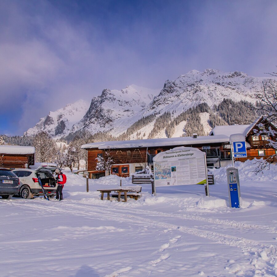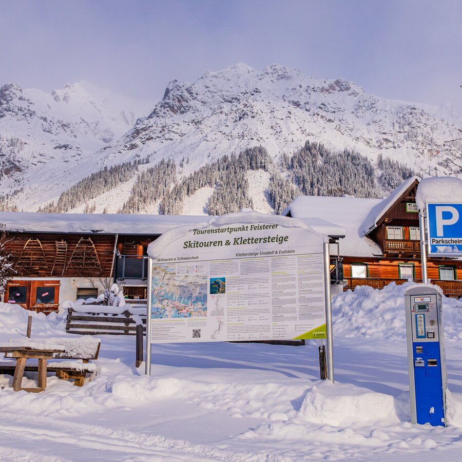 Bei guten Schneeverhältnissen kannst du direkt neben dem Hotel Stierer über den präparierten Winterwanderweg und den Zubringer zum Feisterer aufsteigen.