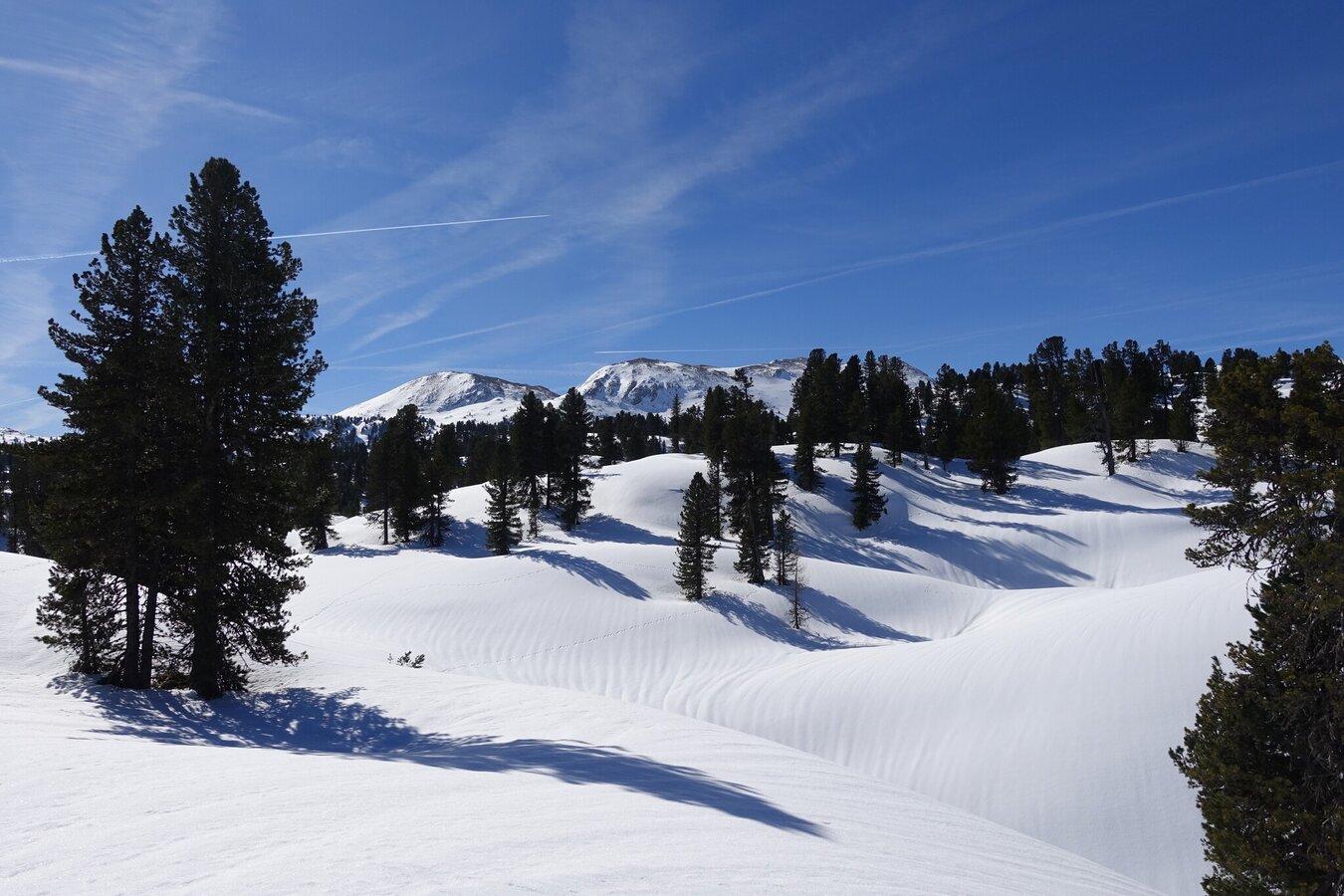 Unter anderem lässt sich der Lackner Miesberg (2.232m) als Gipfel mitnehmen. Hier sind natürlich Felle notwendig, bitte auch den zusätzlichen Zeitaufwand einplanen.
