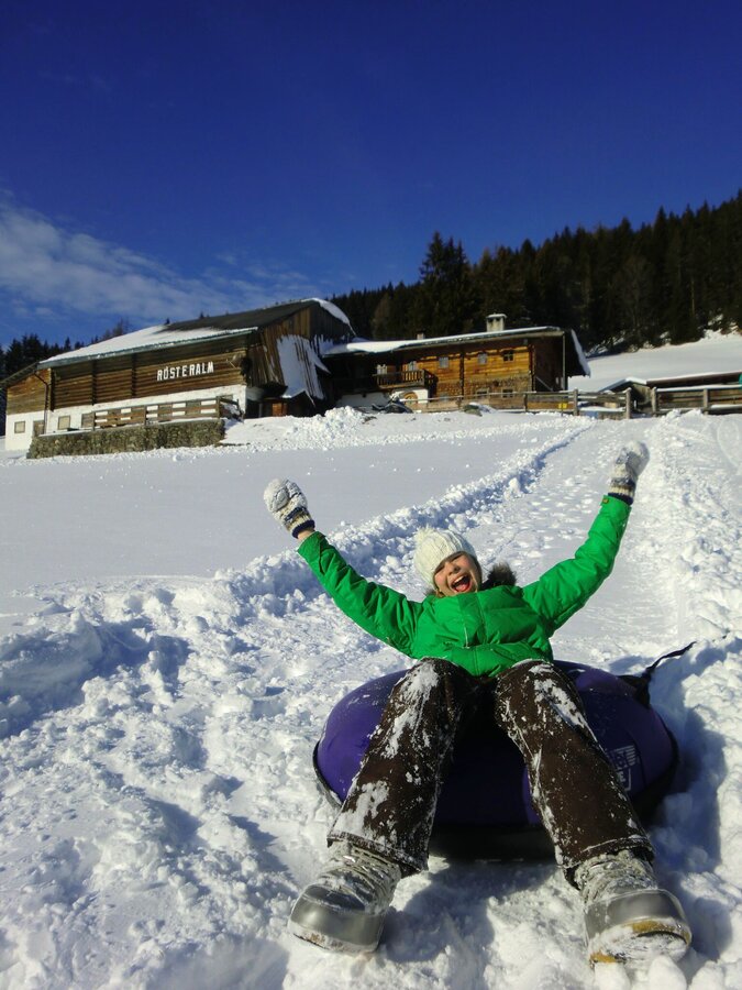 Zu Fuß gelangst Du über den Stoanerhof nach ca. 35 Minuten Gehzeit zur gemütlichen Rösteralm. Dort warten drei Bahnen auf Dich, hier saust jeder nach seinen Wünschen und Können den Hang hinunter. Für die extra Mutigen gibt es eine anspruchsvollere Bahn mit eingebauten Buckeln. Die vorhandene Schneekanone sorgt dafür, dass die Bahnen immer im besten Zustand sind. Zusätzlich besteht die Möglichkeit mit einer Rodel zum Stoanerhof zurück zukommen.