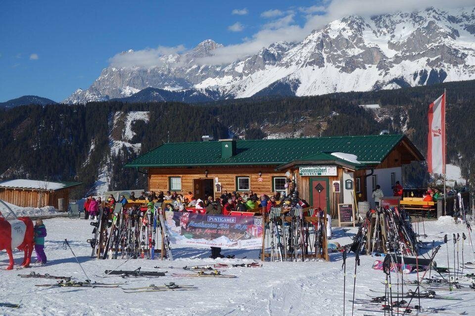 Was gibt es Schöneres, als nach einem ausgiebigen Skitag, sich im Sonnenstüberl bei einem Getränk zu erfrischen und noch einmal kräftig Sonne zu tanken, bevor man die letzten Meter ins Tal zurücklegt und das in ganz besonders familiärer Atmosphäre mit leckeren steirischen Schmankerln und gemütlichem Hüttenflair.