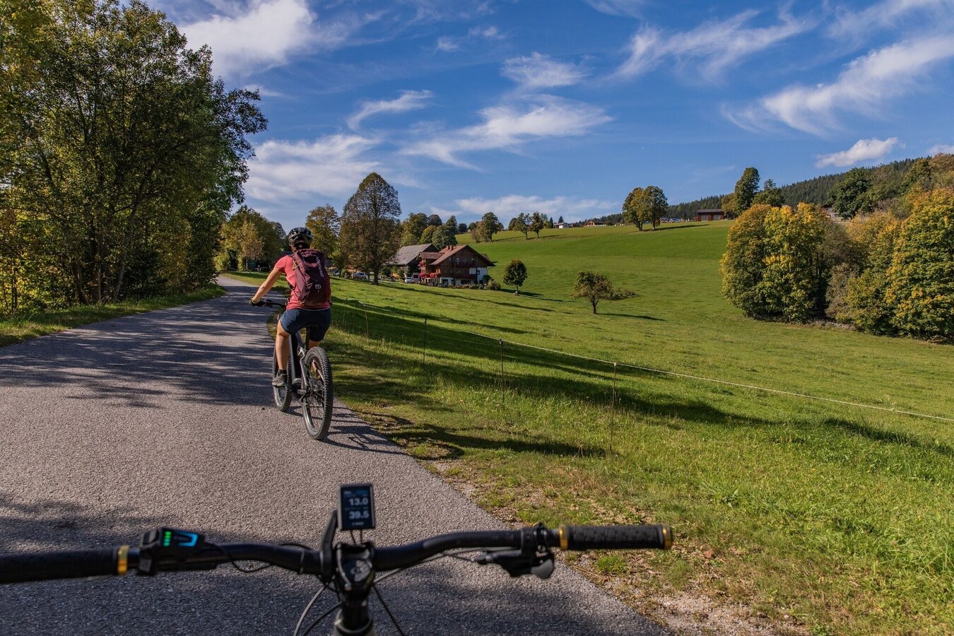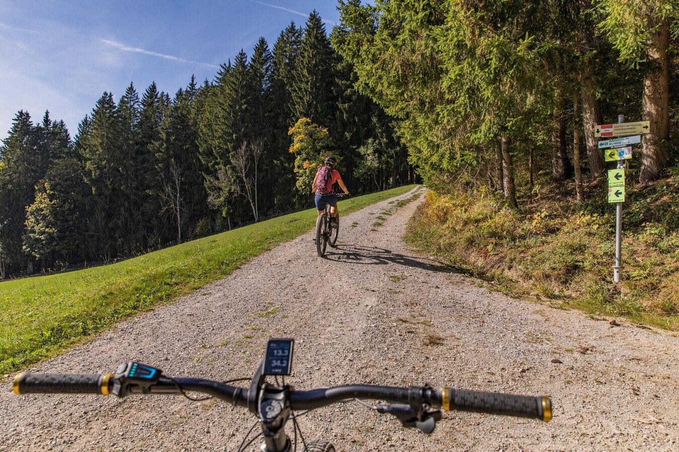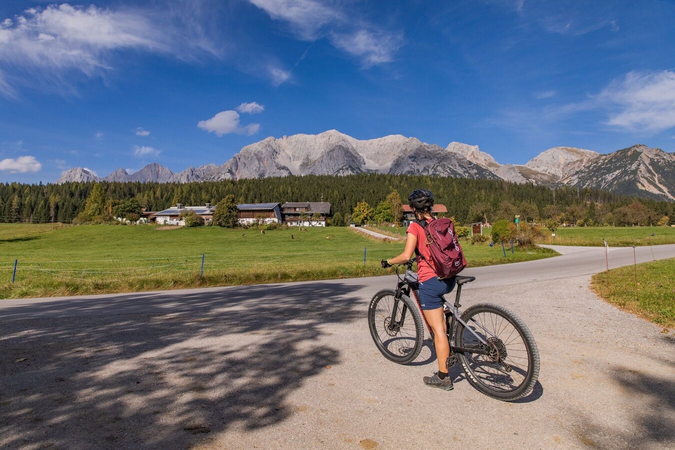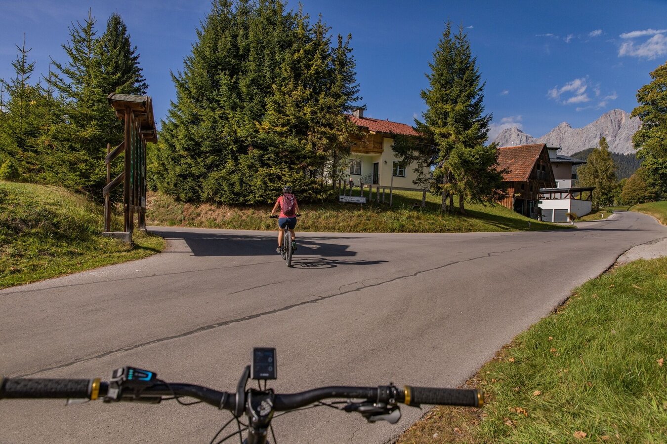 Nach kurzen Asphaltpassagen führt die Runde abwechselnd über Forstwege und schmale, aber einfach fahrbare Pfade durch Ramsau am Dachstein.