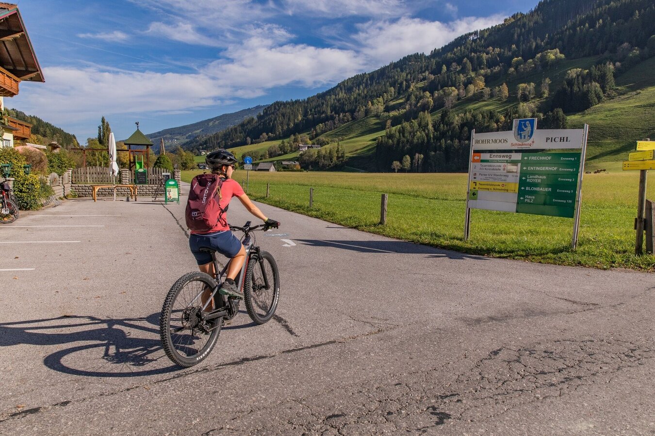 Planet Planai – Zirngast – Oberndorf – Birnberg – Timmelbauer – Strimitzweg – Untere Leiten – Weiglhof – Torf – Biobauernhof Brandlhof – Stockerwirt – Fichtenheim – Kreuzung Pichl-Vorberg – Pichl Vorberg – Steirerhof – Pichl – Ennsradweg – Café Hermann – Maistatt – Schladming – Ausgangspunkt