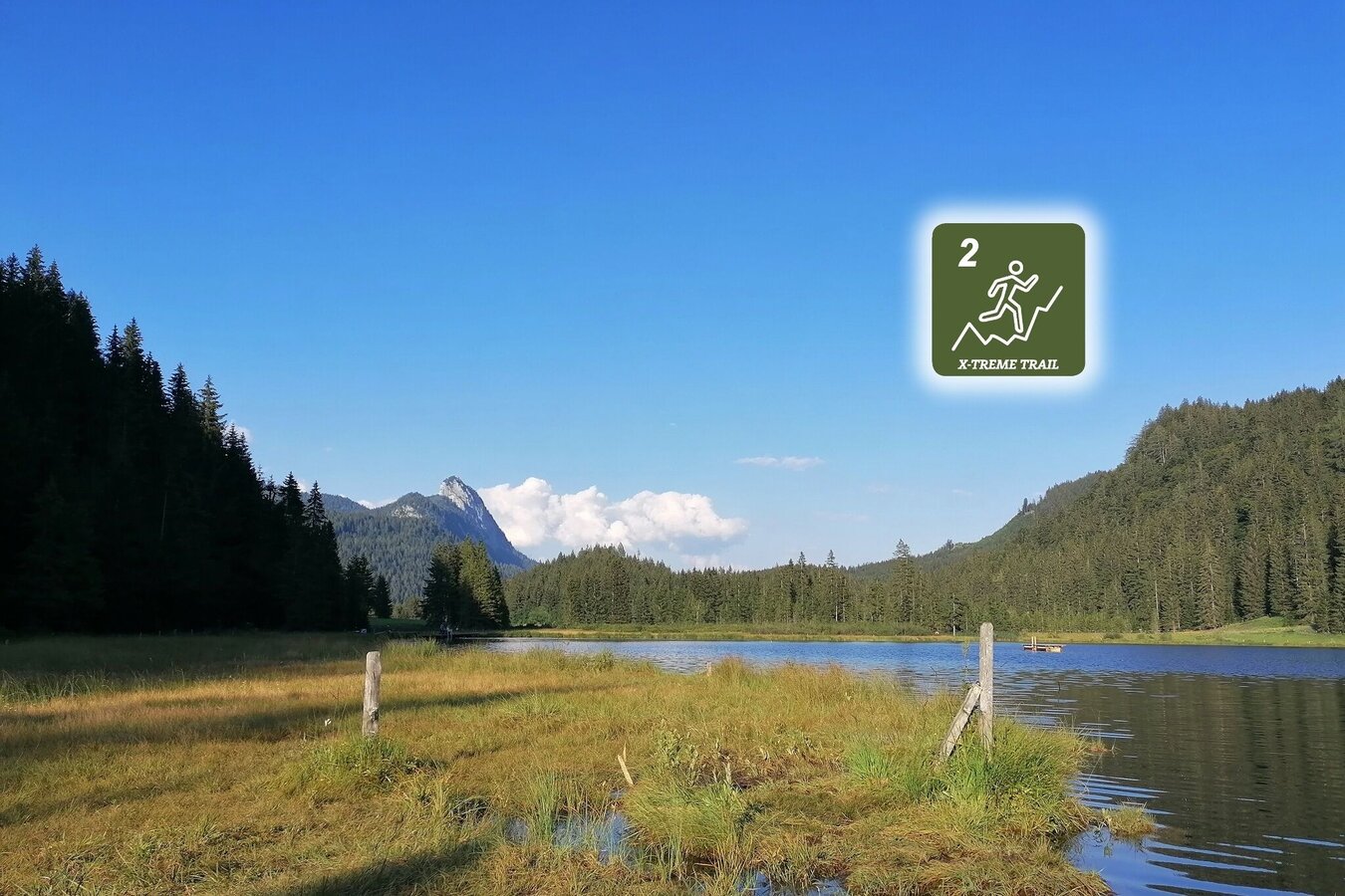 Vom Startpunkt GH Weitgasser führt auch dieser Weg zuerst über den Fürstensteig in Richtung Stainach, wo dann der erste richtige Anstieg zur Leistenalm hinaufführt. Nach einigen Höhenmetern kommt man direkt am Spechtensee vorbei. Von dort aus geht es zuerst noch über ein Asphaltstück, bis es wieder über einen Forstweg in Richtung Aicherlkar geht. Waldwege, Singletrails und ein Wechsel aus Auf- und Ab Passagen führen dich am Aicherlstein vorbei.