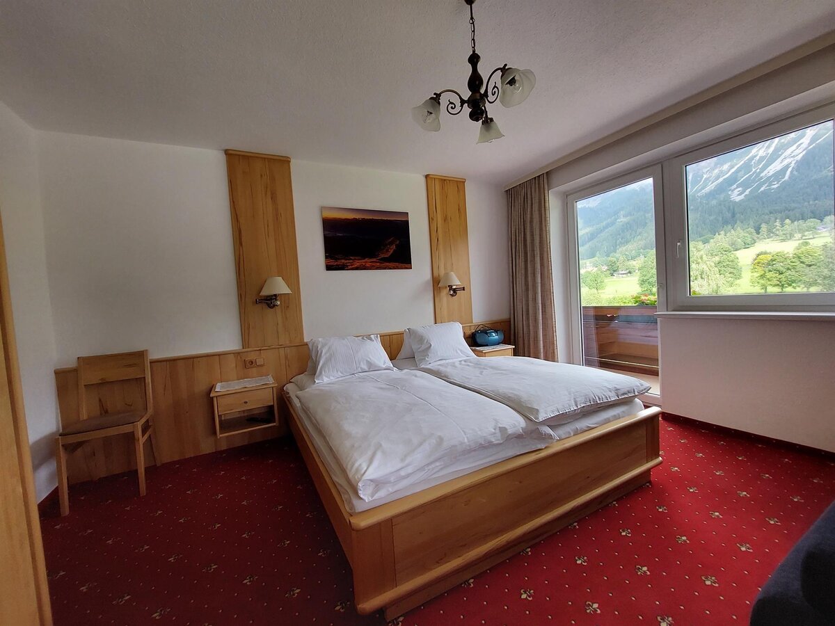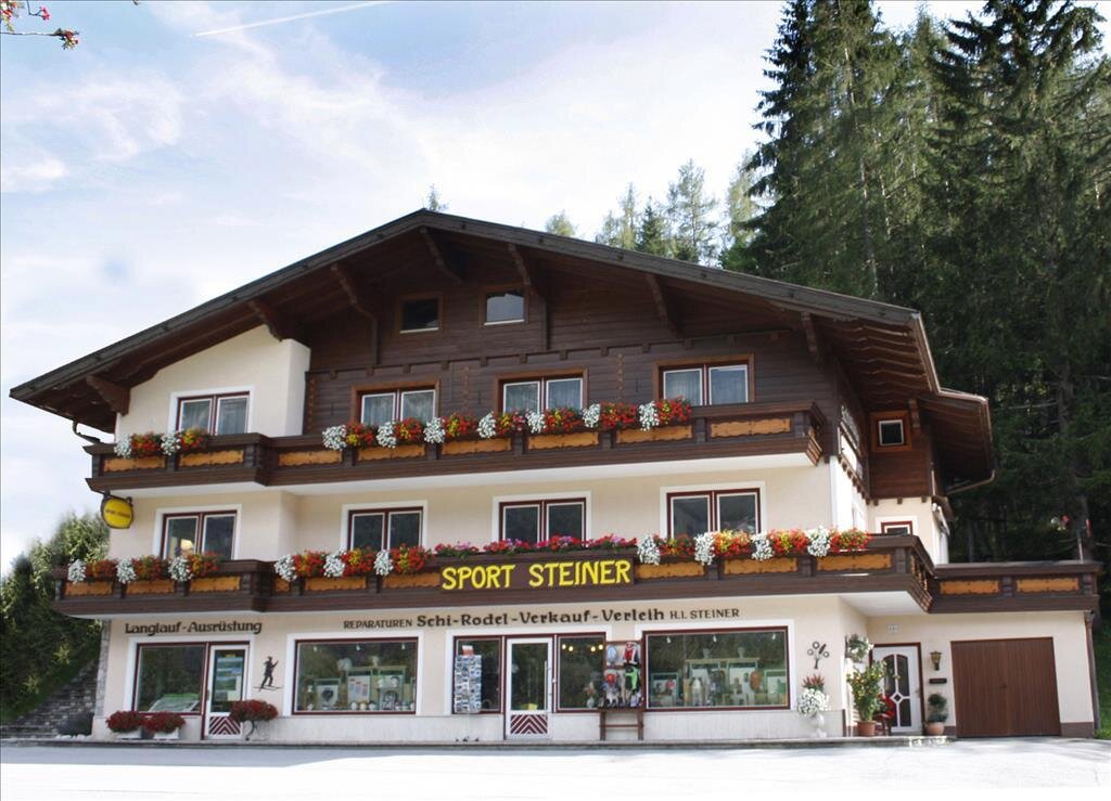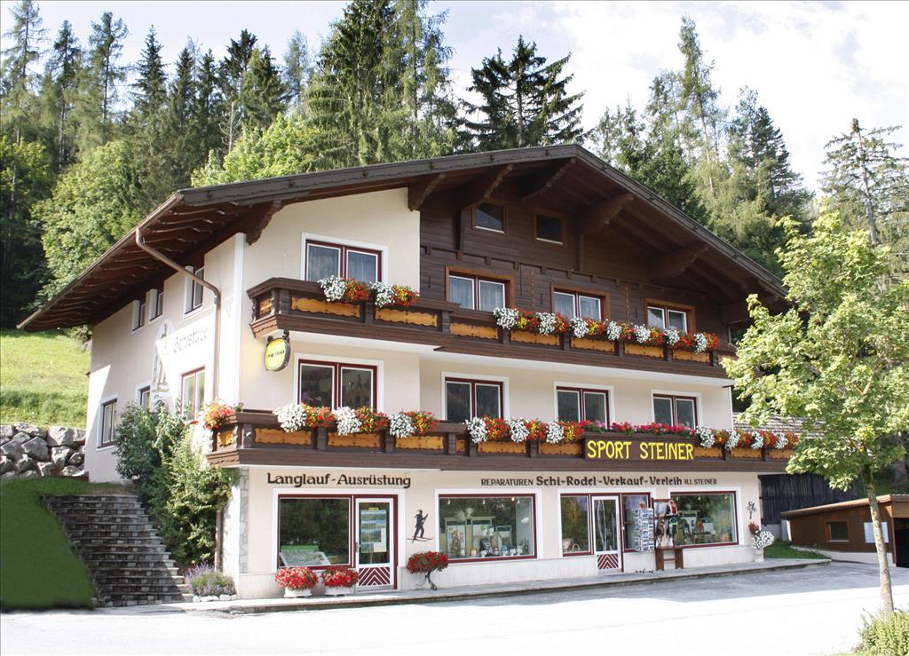 Wir begrüßen Sie recht herzlich in unserer familiär geführten Frühstückspension Sport Steiner in Ramsau am Dachstein. Unsere Frühstückspension und Sportfachgeschäft liegt direkt am Panoramaweg, als Ausgangspunkt für Wanderungen und Sparziergänge. Im Winter erreichen Sie die Langlauf Loipen und Winterwanderwege in nur 3 Gehminuten. Ein Supermarkt, Restaurants, das Informationsbüro und die Bushaltestelle liegen in unmittelbarer Nähe. In unserem Sportgeschäft erhalten unsere Gäste 10% Nachlass auf alle Artikel, sowie auf den Verleih von Langlaufausrüstung, Skiausrüstung, Snowboards und Rodeln. Ihre Skiausrüstung verwahren Sie sicher in unserem Skiabstellraum mit Schuhtrockner und Ski-Service-Raum. Die Skiberge Ramsau Rittisberg und Ski amadé mit Hauser Kaibling, Planai, Hochwurzen und Reiteralm, sowie der Dachstein Gletscher sind mit dem Skibus oder mit dem eigenen PKW gut zu erreichen. Verbringen Sie Ihren Urlaub in unseren gemütlichen Komfortzimmern, ausgestattet mit Dusche, WC, Sofa oder Sitzecke, Sat-TV, Radio und Wlan. Alle Zimmer verfügen über einen Balkon mit herrlichem Blick auf das Dachsteinmassiv. Auf Wunsch stellen einen Kinderhochstuhl zur Verfügung. Unsere Gäste parken kostenlos im Carport. Morgens stärken Sie sich bei einem erweiterten Frühstück und starten so in einen aktiven Tag. Im Frühling, Sommer und Herbst ist unsere Frühstückspension Sport Steiner ein idealer Ausgangspunkt für Bewegung in frischer Luft. Beim Wandern, Mountainbiken, Klettern, Nordic Walking, E-Biken und Reiten verbringen Sie Ihre Urlaubstage in der schönen Naturlandschaft rund um Ramsau am Dachstein. Ab einer Übernachtung erhalten unsere Gäste mit der Schladming-Dachstein Sommercard freien Eintritt in über 100 kostenlose Urlaubsattraktionen und über 100 Erlebnisse. Wir freuen uns auf Ihren Besuch in unserer Frühstückspension Sport Steiner in Ramsau am Dachstein! Ihre Familie Steiner
