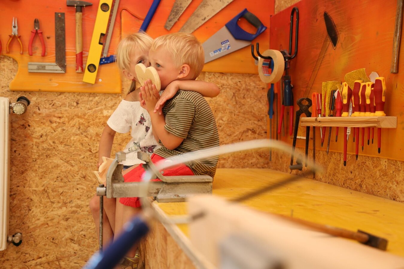 Aktivitäten: Trettraktoren, Pumuckl-Werkstatt, Tischtennis, Tischfußball, Spielplatz mit Trampolin und Karussel sowie die Mithilfe im Stall