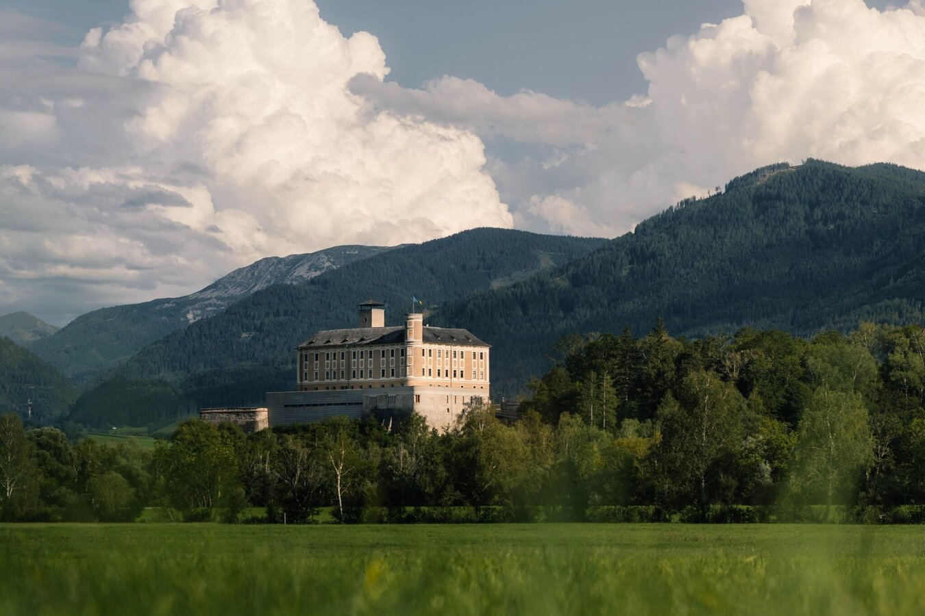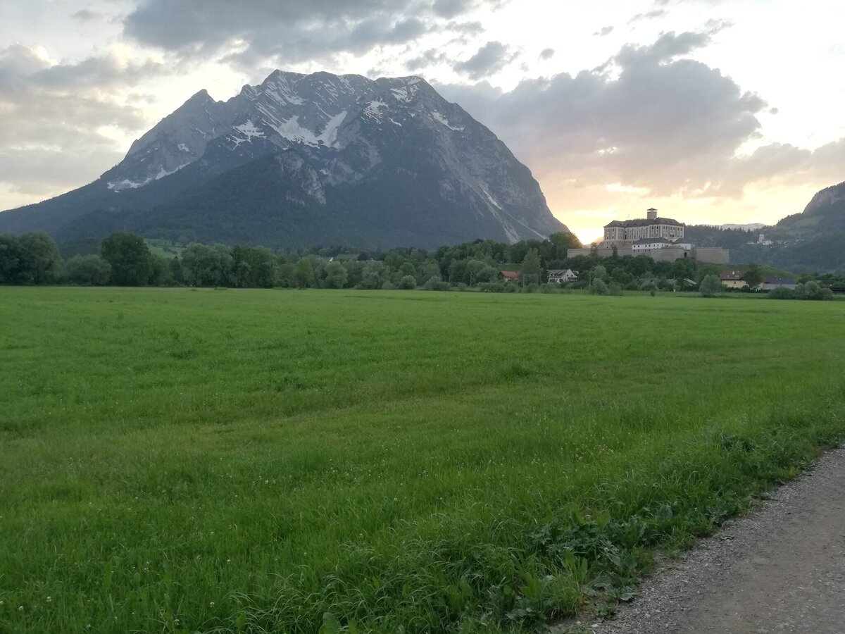 Vom Startpunkt bei der Freizeitanlage Irdning geht es zunächst geradeaus Richtung Trautenfels wo du dich links hätlst entlang der Fischteiche. Über den Grimmingbach geht es rechts hinunter zur alten Bundesstraße, der du bis kurz vor Untergrimming folgst.Dort zweigst du rechts ab nach Unterburg. Nach dem Durchqueren des Ortes steigt der Weg sanft an – ein perfekter Abschnitt, um die Weite des Ennstals und den Blick auf Trautenfels zu genießen.