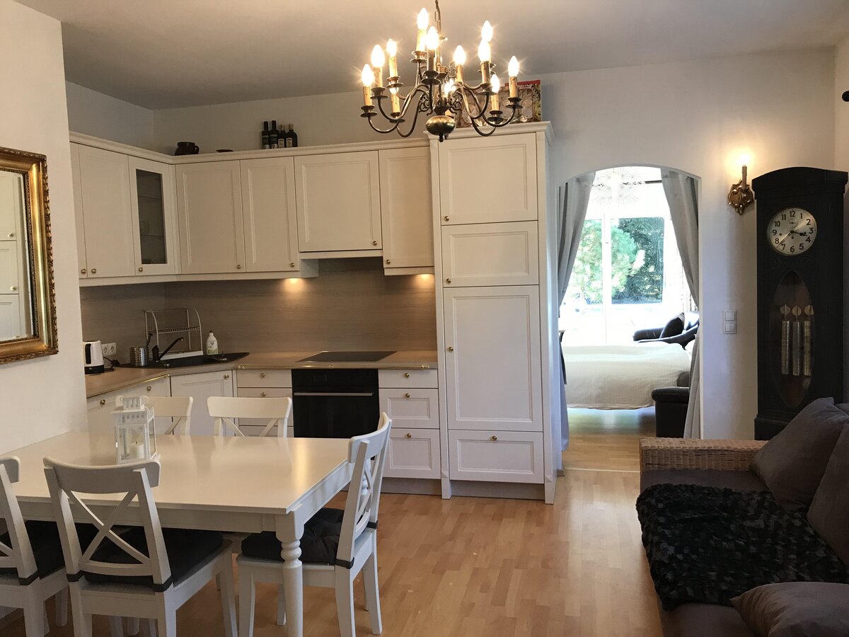 DER WOHNRAUM: Ich biete eine 2-Zimmer-Ferienwohnung, bestehend aus 1 Schlafzimmer mit Doppelbett, einer voll ausgestatteten Designer Küche, einem Badezimmer und einer privaten Terrasse. Im Wohnbereich befindet sich ein gemütliches Sofa, welches als zweites Bett für einer der beiden Gäste dienen kann (Jedoch ist zwischen Schlafzimmer und Küche-Wohnraum nur ein trennender Vorhang). Die Wohnung befindet sich auf dem Erdgeschoss.